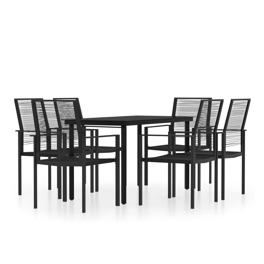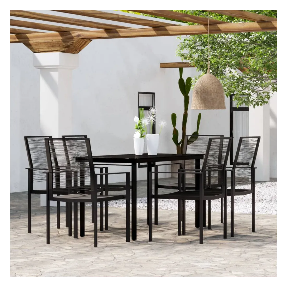 Créez une esthétique convaincante et uniforme dans votre espace extérieur avec cet ensemble de salle à manger de jardin ! L'ensemble de salle à manger de patio est doté d'un cadre en acier enduit de poudre qui rend la table et les chaises stables et durables. Le dessus de table en verre lisse est facile à nettoyer à l'aide d'un chiffon humide et est parfait pour placer des repas, des boissons et d'autres objets décoratifs. Grâce au rotin creux PVC résistant à l’eau, les chaises sont résistantes à l'usure, faciles à entretenir et adaptées à une utilisation quotidienne à l’extérieur. De plus, les dossiers ajoutent un confort supplémentaire aux chaises. Remarque : afin de prolonger la durée de vie des meubles d'extérieur, nous vous recommandons de les protéger avec une housse imperméable.