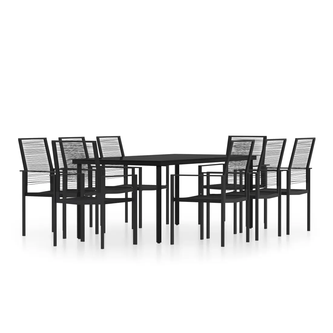 Créez une esthétique convaincante et uniforme dans votre espace extérieur avec cet ensemble de salle à manger de jardin ! L'ensemble de salle à manger de patio est doté d'un cadre en acier enduit de poudre qui rend la table et les chaises stables et durables. Le dessus de table en verre lisse est facile à nettoyer à l'aide d'un chiffon humide et est parfait pour placer des repas, des boissons et d'autres objets décoratifs. Grâce au rotin creux PVC résistant à l’eau, les chaises sont résistantes à l'usure, faciles à entretenir et adaptées à une utilisation quotidienne à l’extérieur. De plus, les dossiers ajoutent un confort supplémentaire aux chaises. Remarque : afin de prolonger la durée de vie des meubles d'extérieur, nous vous recommandons de les protéger avec une housse imperméable.