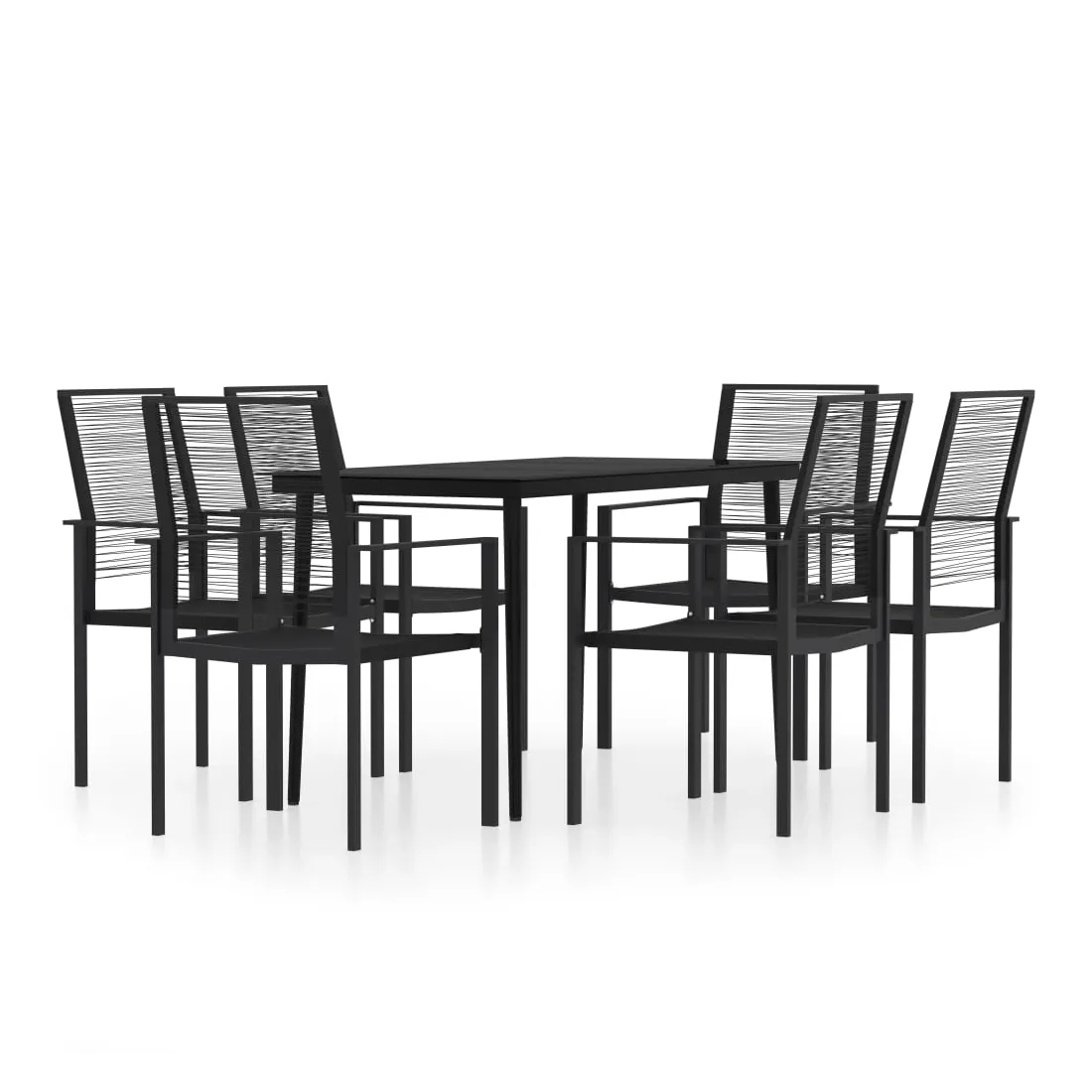 Créez une esthétique convaincante et uniforme dans votre espace extérieur avec cet ensemble de salle à manger de jardin ! L'ensemble de salle à manger de patio est doté d'un cadre en acier enduit de poudre qui rend la table et les chaises stables et durables. Le dessus de table en verre lisse est facile à nettoyer à l'aide d'un chiffon humide et est parfait pour placer des repas, des boissons et d'autres objets décoratifs. Grâce au rotin creux PVC résistant à l’eau, les chaises sont résistantes à l'usure, faciles à entretenir et adaptées à une utilisation quotidienne à l’extérieur. De plus, les dossiers ajoutent un confort supplémentaire aux chaises. Remarque : afin de prolonger la durée de vie des meubles d'extérieur, nous vous recommandons de les protéger avec une housse imperméable.