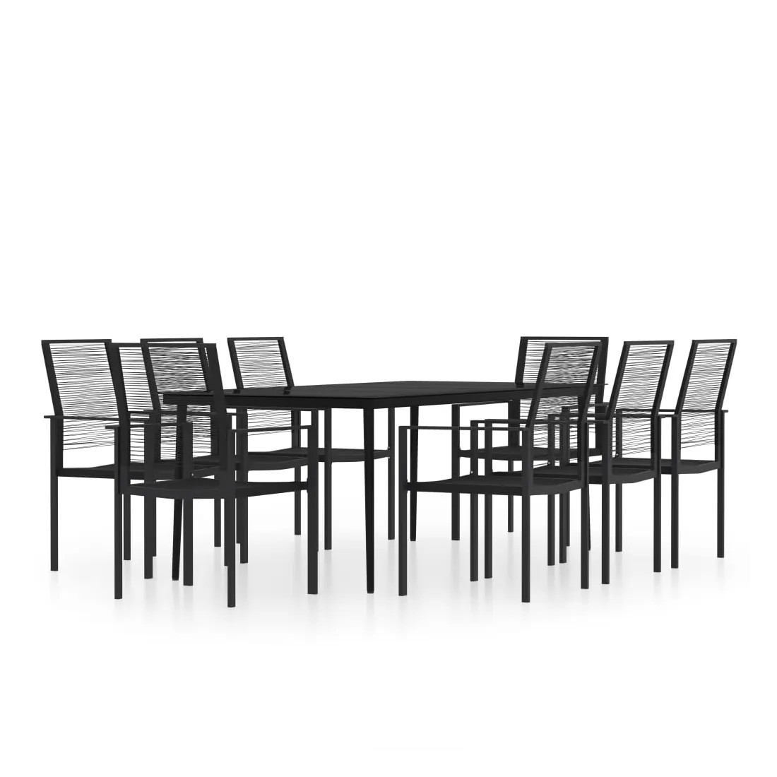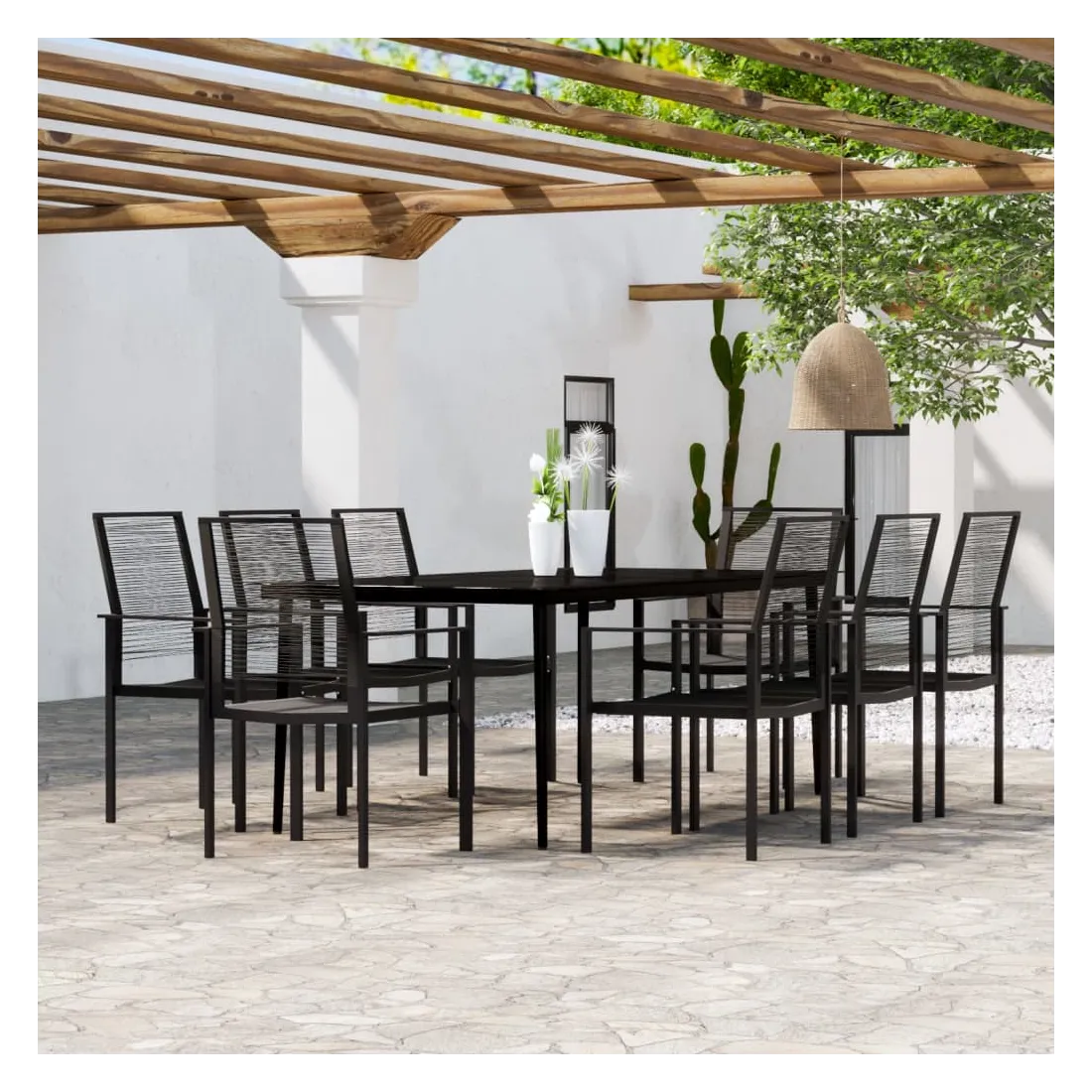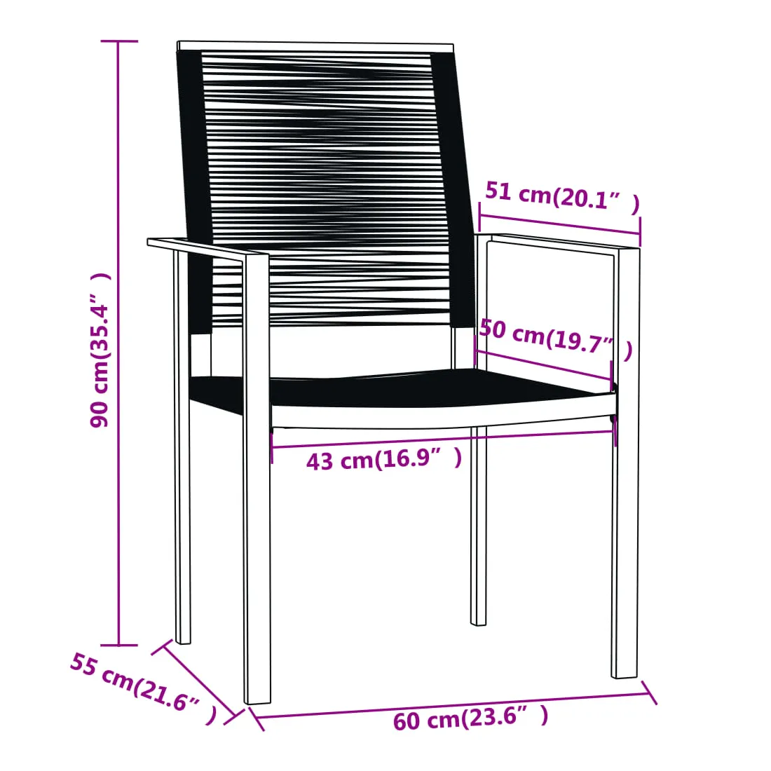 Créez une esthétique convaincante et uniforme dans votre espace extérieur avec cet ensemble de salle à manger de jardin ! L'ensemble de salle à manger de patio est doté d'un cadre en acier enduit de poudre qui rend la table et les chaises stables et durables. Le dessus de table en verre lisse est facile à nettoyer à l'aide d'un chiffon humide et est parfait pour placer des repas, des boissons et d'autres objets décoratifs. Grâce au rotin creux PVC résistant à l’eau, les chaises sont résistantes à l'usure, faciles à entretenir et adaptées à une utilisation quotidienne à l’extérieur. De plus, les dossiers ajoutent un confort supplémentaire aux chaises. Remarque : afin de prolonger la durée de vie des meubles d'extérieur, nous vous recommandons de les protéger avec une housse imperméable.