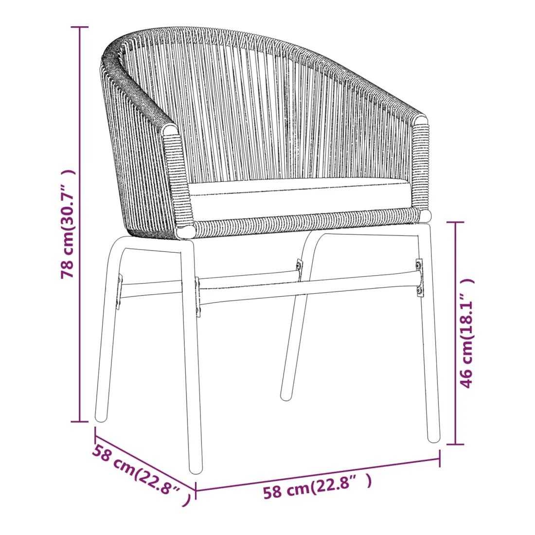- Matériau : rotin PVC, acier enduit de poudre