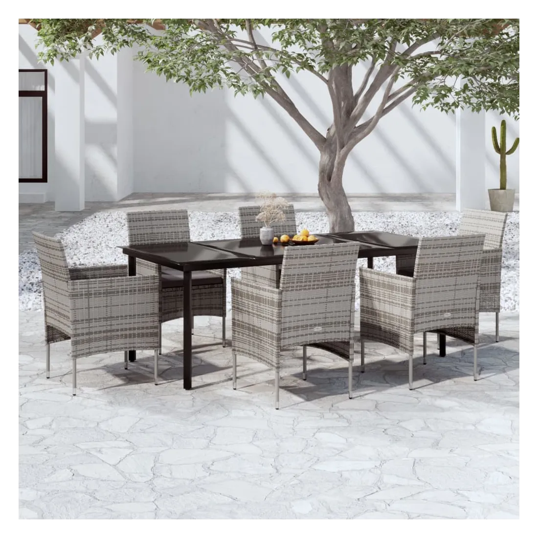 Ensemble à manger de jardin coussins 7pcs Gris et noir