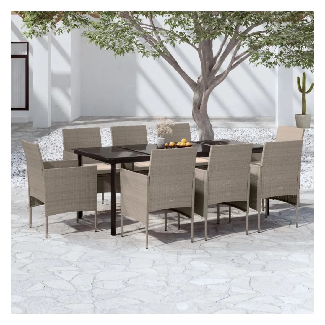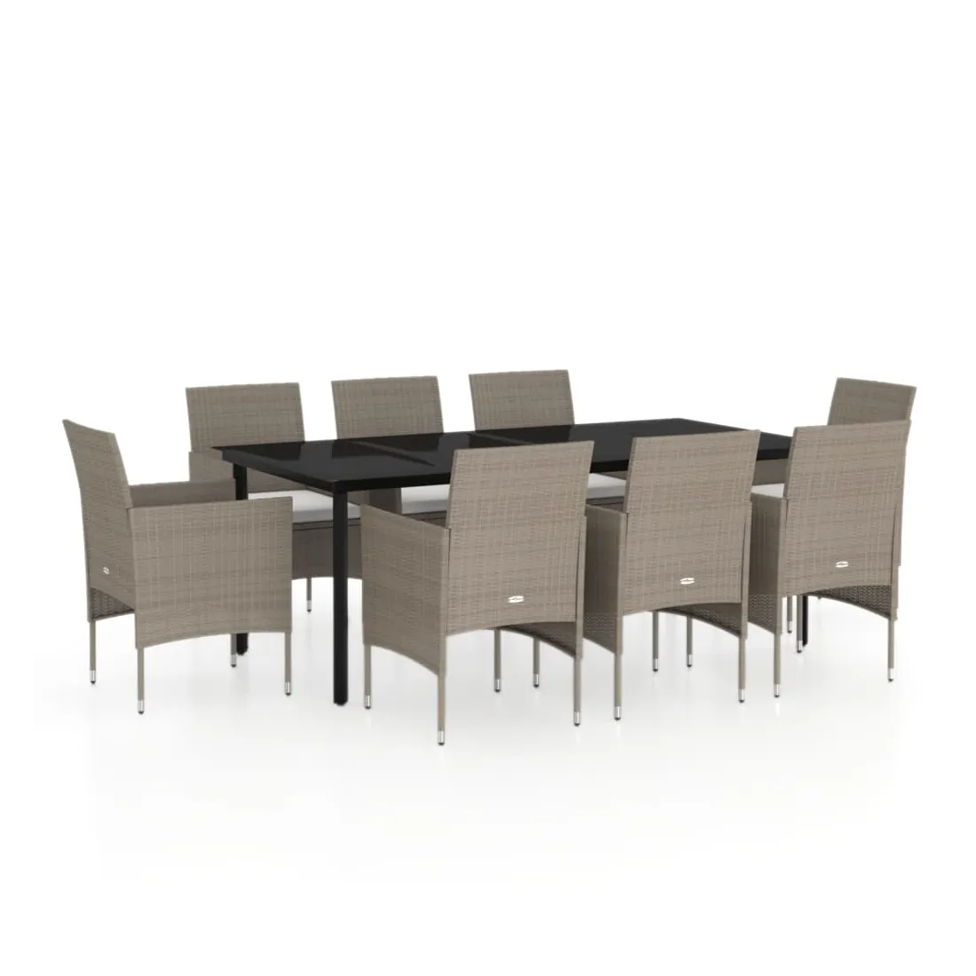 Ensemble à manger de jardin coussins 9 pcs Beige/noir