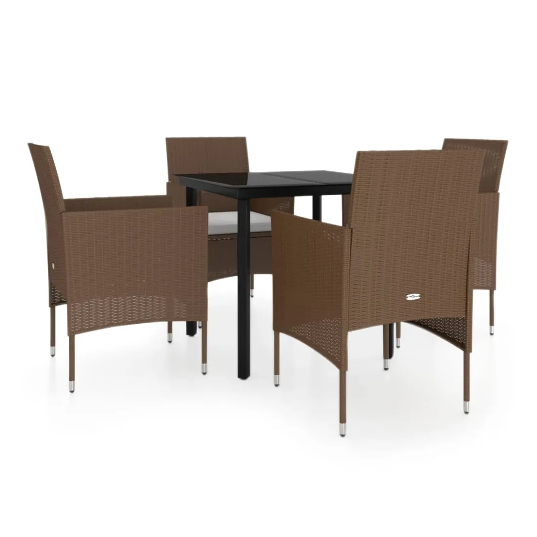Ensemble à manger de jardin coussins 5 pcs Marron/noir
