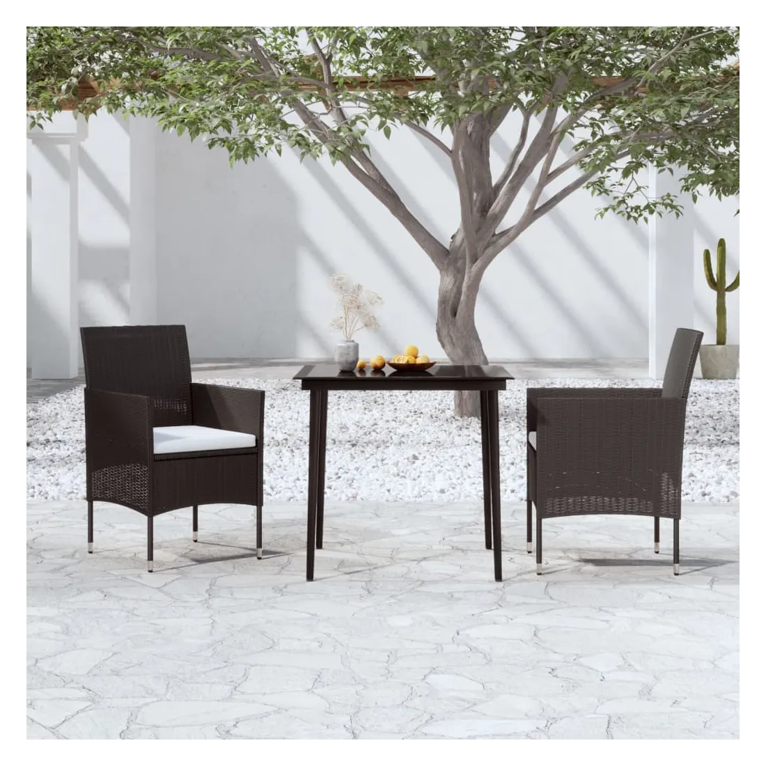 Cet ensemble de salle à manger de jardin est un excellent choix pour manger ou vous détendre dans l'espace extérieur ! Les cadres en acier enduit de poudre rendent la table et les chaises robustes et stables pour une utilisation quotidienne à l'extérieur. Grâce à la résine tressée résistante à l’eau, les chaises sont faciles à nettoyer et conviennent à un usage quotidien. Le dessus de table en verre lisse est facile à nettoyer avec un chiffon humide et parfait pour placer les repas, les boissons et autres articles décoratifs. Remarque : afin de prolonger la durée de vie des meubles d'extérieur, nous vous recommandons de les protéger avec une housse imperméable.