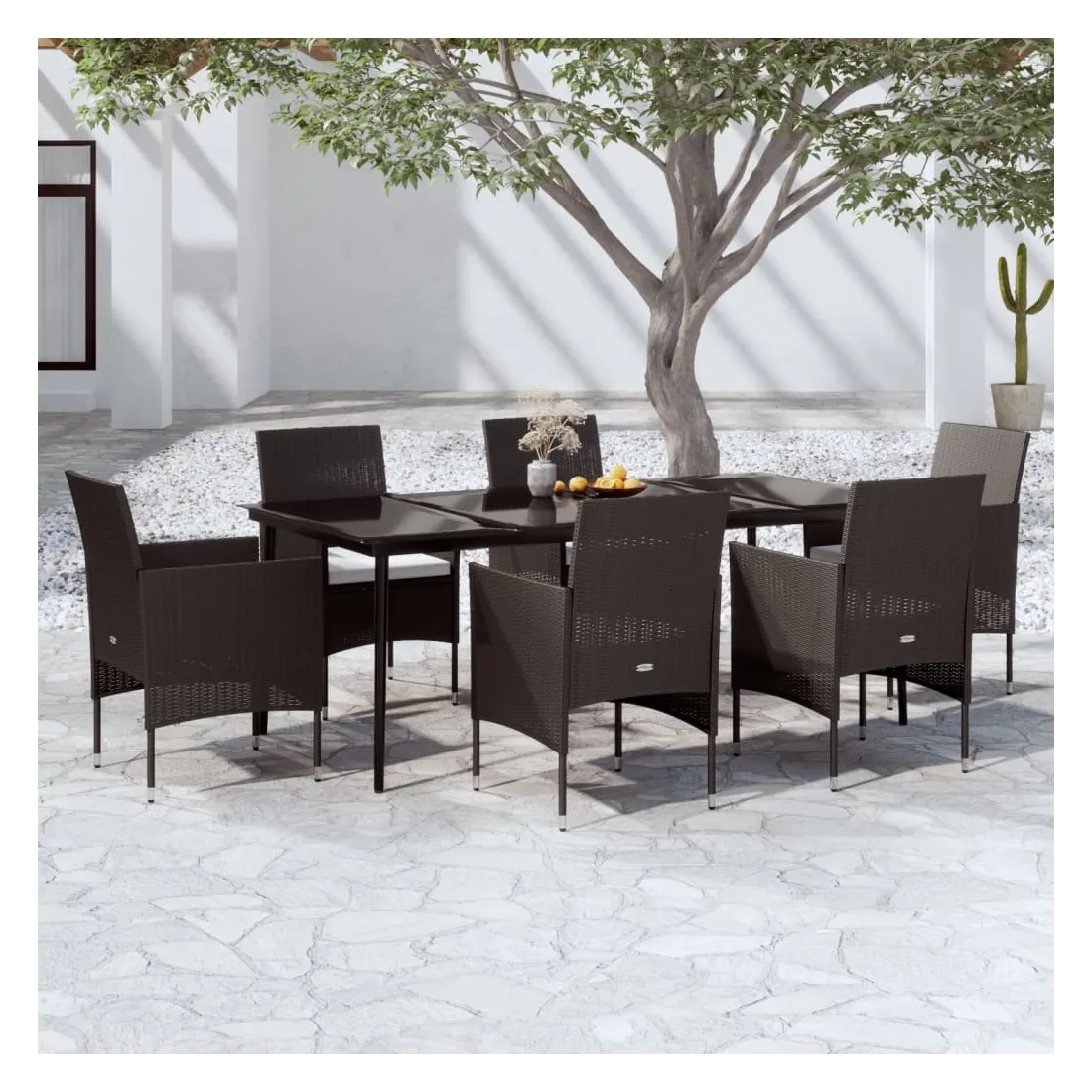 Ensemble à manger de jardin avec coussins 7 pcs Noir