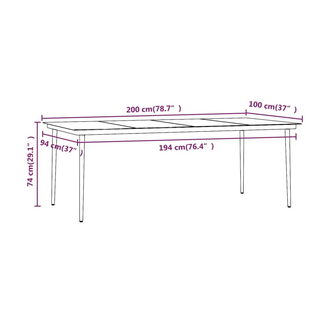 • Dimensions de la table : 200 x 100 x 74 cm (L x l x H)