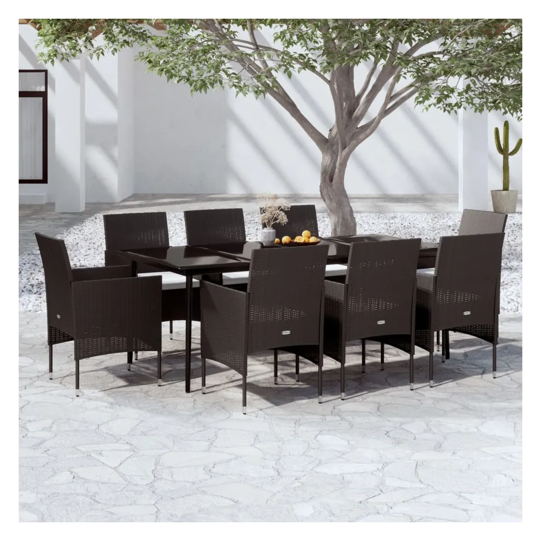 Ensemble à manger de jardin avec coussins 9 pcs noir