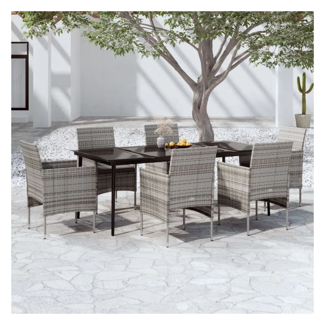 Ensemble à manger de jardin coussins 7pcs Gris et noir