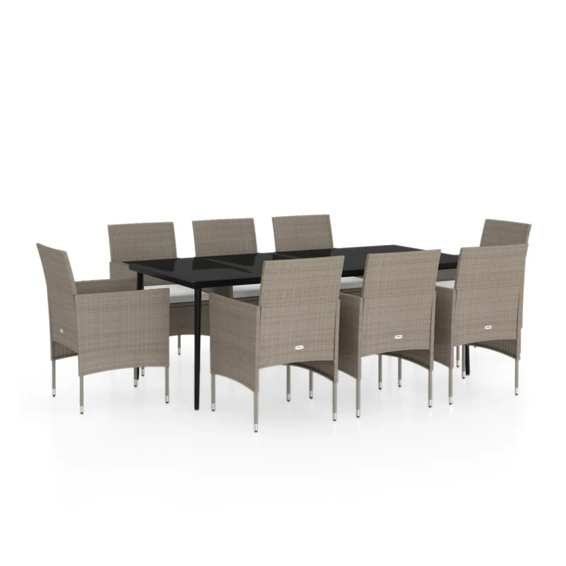 Ensemble à manger de jardin coussins 9 pcs Beige/noir