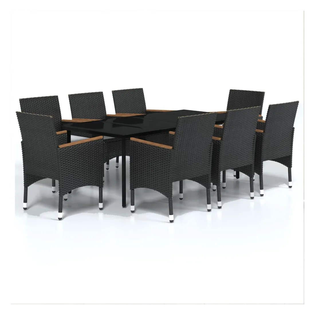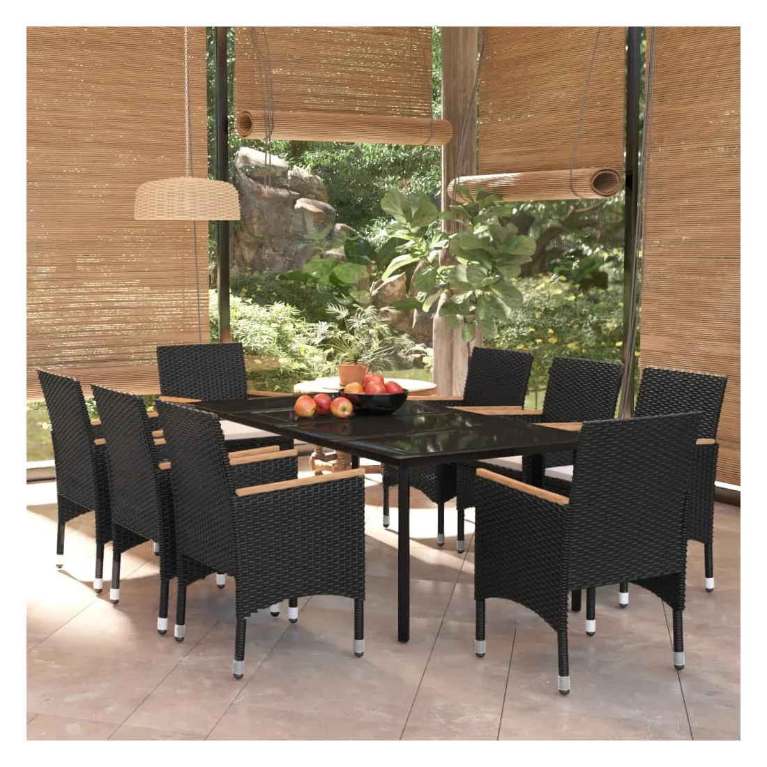 Ensemble à manger de jardin avec coussins 9 pcs noir