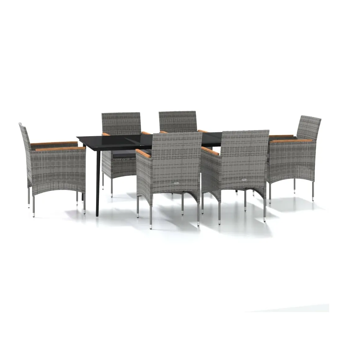 Ensemble à manger de jardin coussins 7pcs Gris et noir