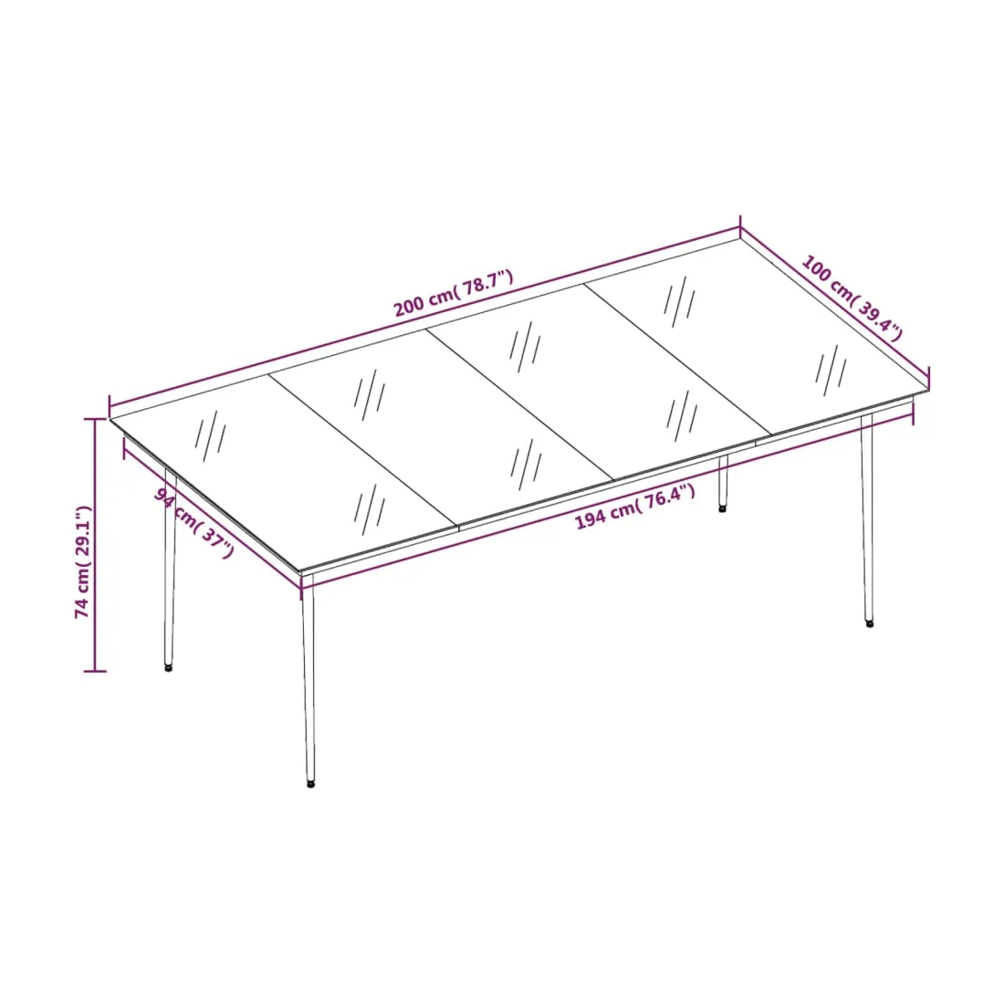 • Dimensions de la table : 200 x 94 x 74 cm (L x l x H)