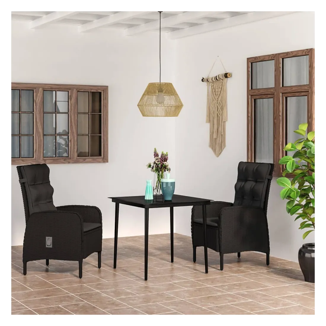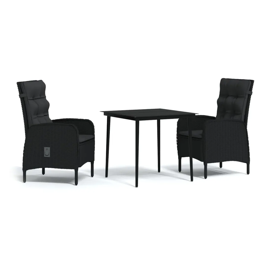 Ensemble à manger de jardin avec coussins 3 pcs noir
