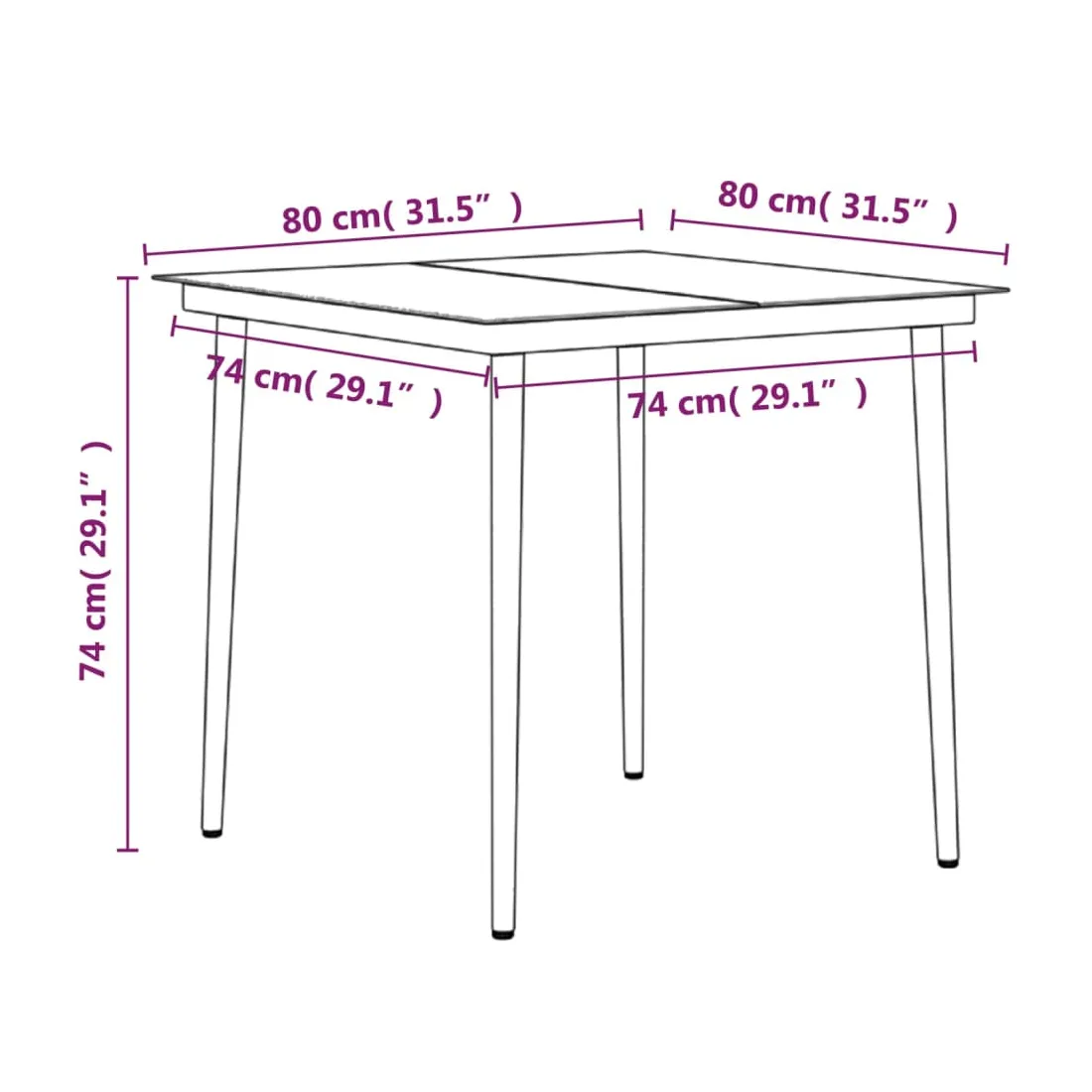 • Dimensions de la table : 80 x 80 x 74 cm (L x I x H)