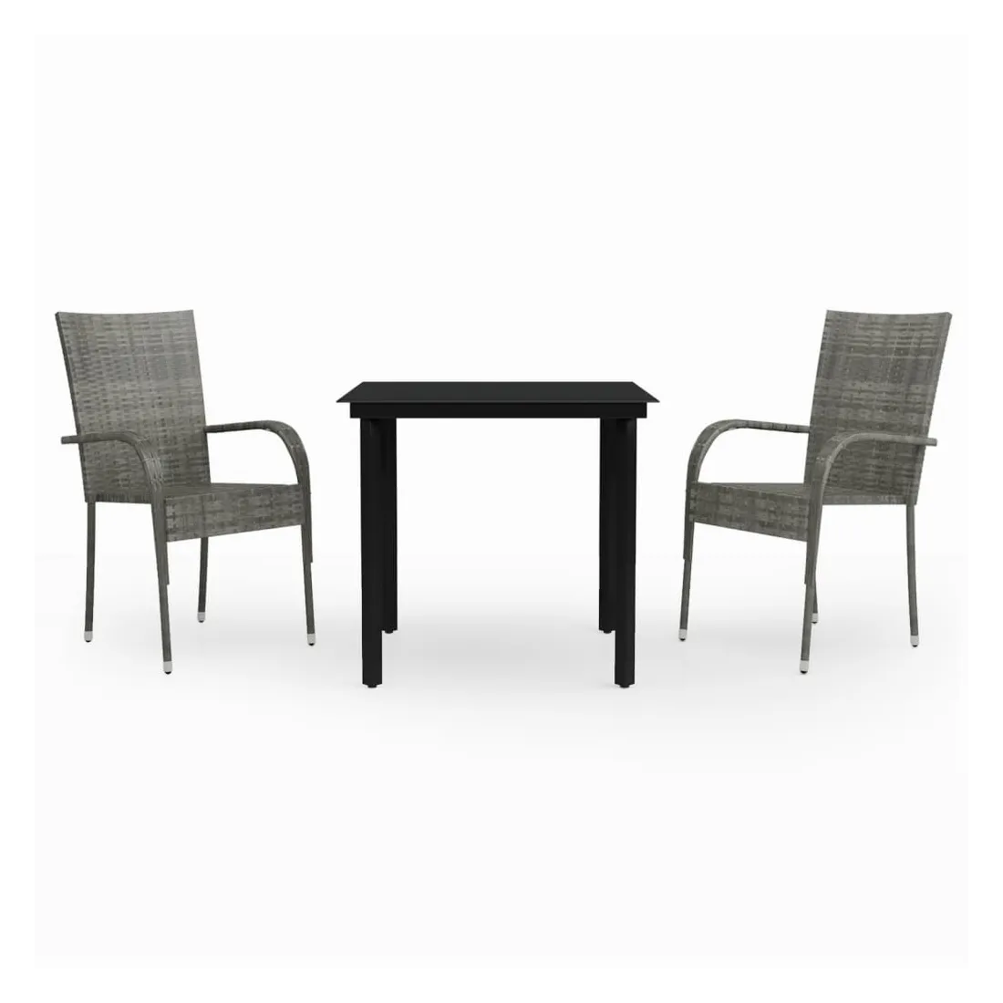 Ensemble à manger de jardin 3 pcs Gris et noir
