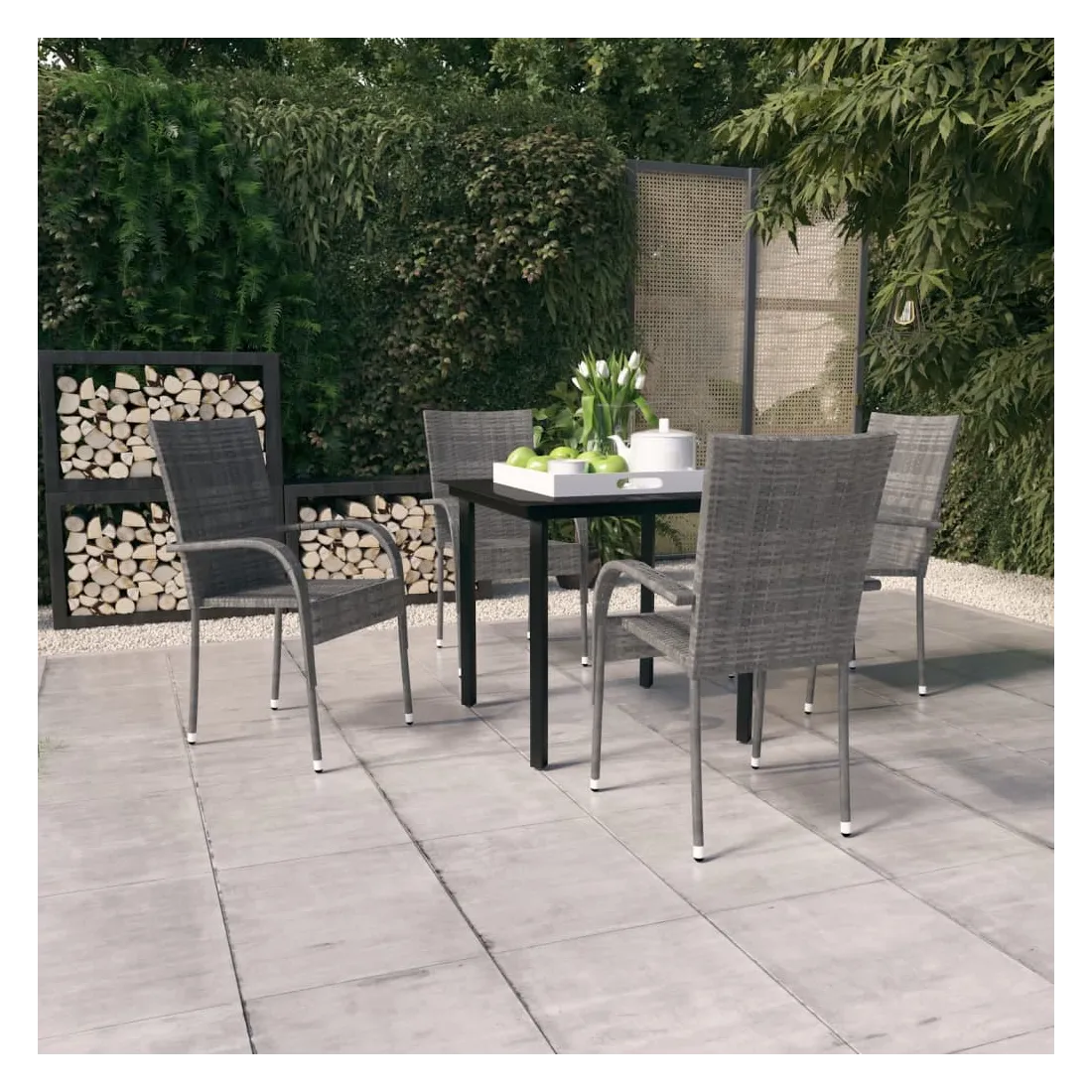 Cet ensemble de salle à manger de jardin est un excellent choix pour manger ou vous détendre dans l'espace extérieur ! Les cadres en acier enduit de poudre rendent la table et les chaises robustes et stables pour une utilisation quotidienne à l'extérieur. Grâce à la résine tressée résistante à l’eau, les chaises sont faciles à nettoyer et conviennent à un usage quotidien. Le dessus de table en verre lisse est facile à nettoyer avec un chiffon humide et parfait pour placer les repas, les boissons et autres articles décoratifs. Remarque : afin de prolonger la durée de vie des meubles d'extérieur, nous vous recommandons de les protéger avec une housse imperméable.