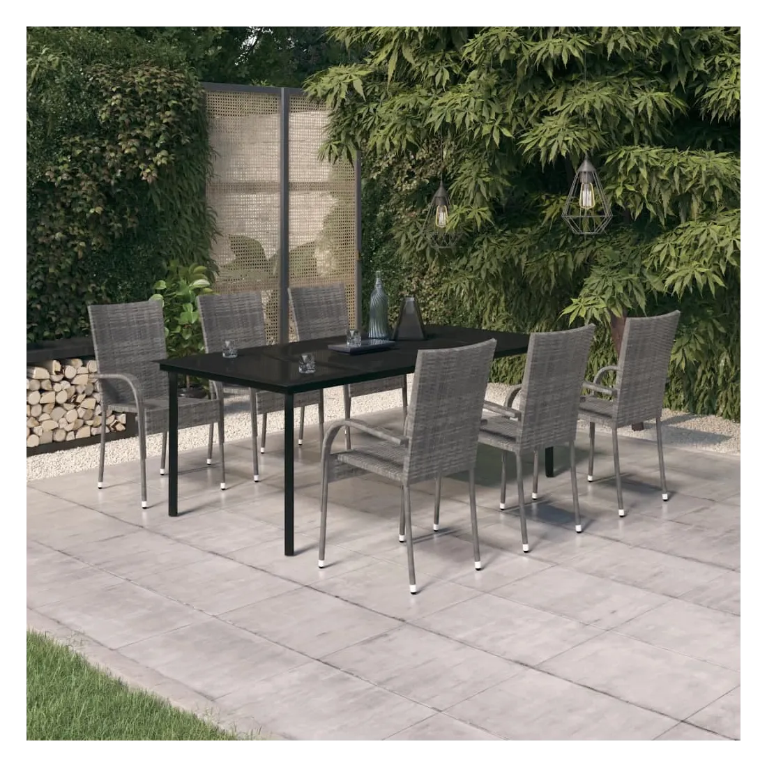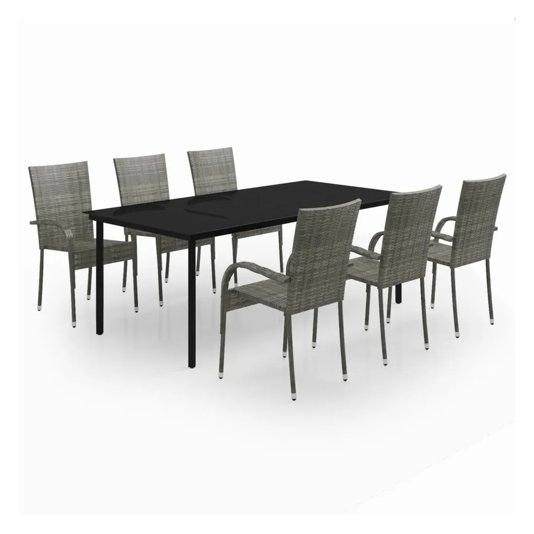 Ensemble à manger de jardin 7 pcs Gris et noir