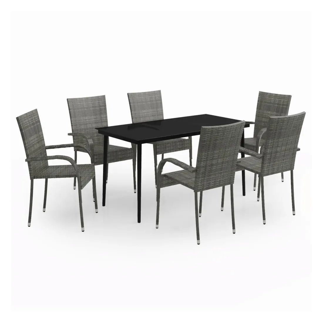 Ensemble à manger de jardin 7 pcs Gris et noir