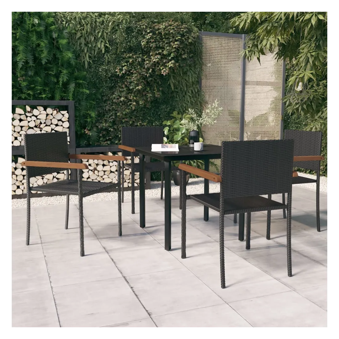 Cet élégant ensemble de salle à manger de jardin est destiné à être le point de mire de votre jardin ou patio ! C'est un excellent choix pour les repas en plein air ou pour vous détendre dans l'espace extérieur ! Les cadres en acier enduit de poudre rendent la table et les chaises robustes et stables pour une utilisation quotidienne en extérieur. Grâce à la résine tressée résistante à l’eau, les chaises sont faciles à nettoyer et résistantes à l'usure. Le dessus de table en verre lisse est facile à nettoyer avec un chiffon humide et parfait pour placer les repas, les boissons et autres articles décoratifs. Remarque : afin de prolonger la durée de vie des meubles d'extérieur, nous vous recommandons de les protéger avec une housse imperméable.