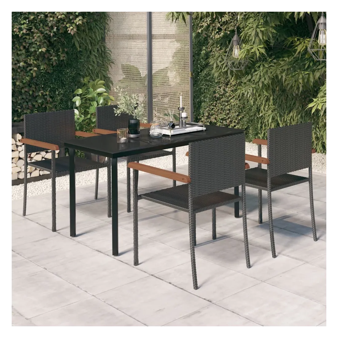 Ensemble à manger de jardin 5 pcs Noir