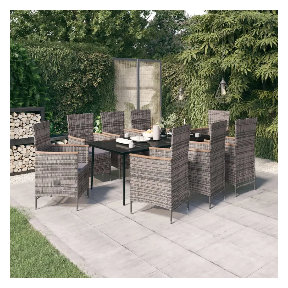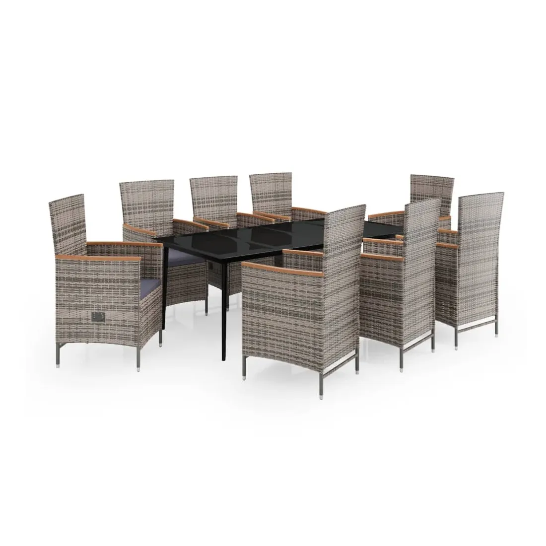 Ensemble à manger de jardin avec coussins 9 pcs Gris