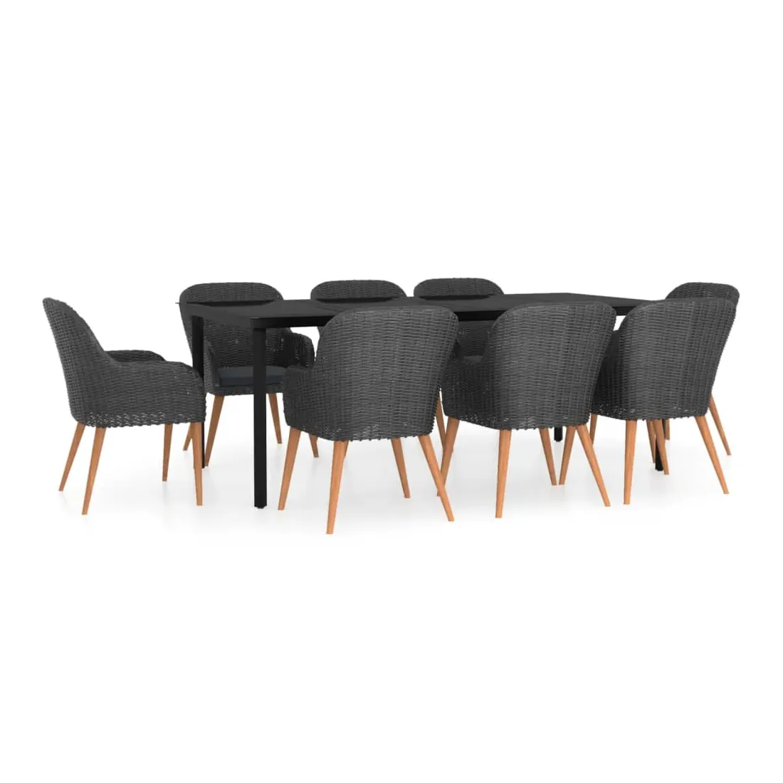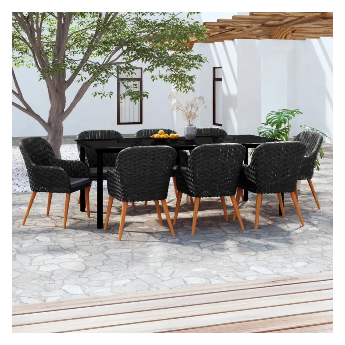 Ensemble à manger de jardin avec coussins 9 pcs noir
