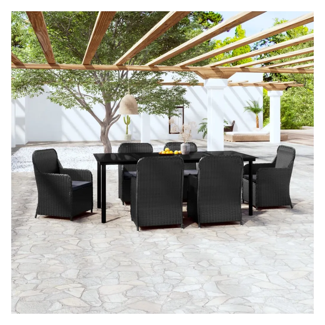 Ensemble à manger de jardin avec coussins 7 pcs Noir
