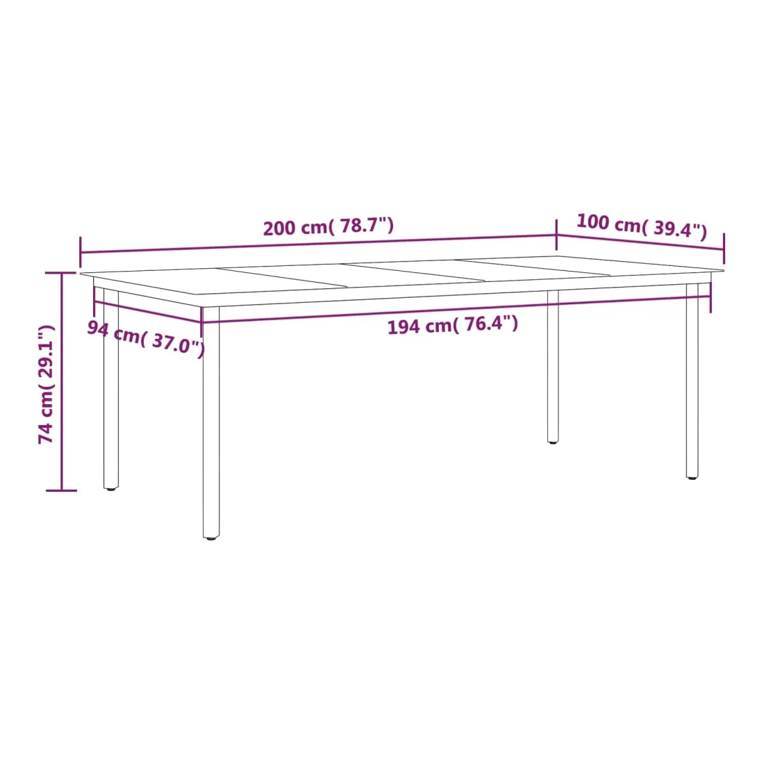 - Dimensions : 200 x 100 x 74 cm (L x l x H)