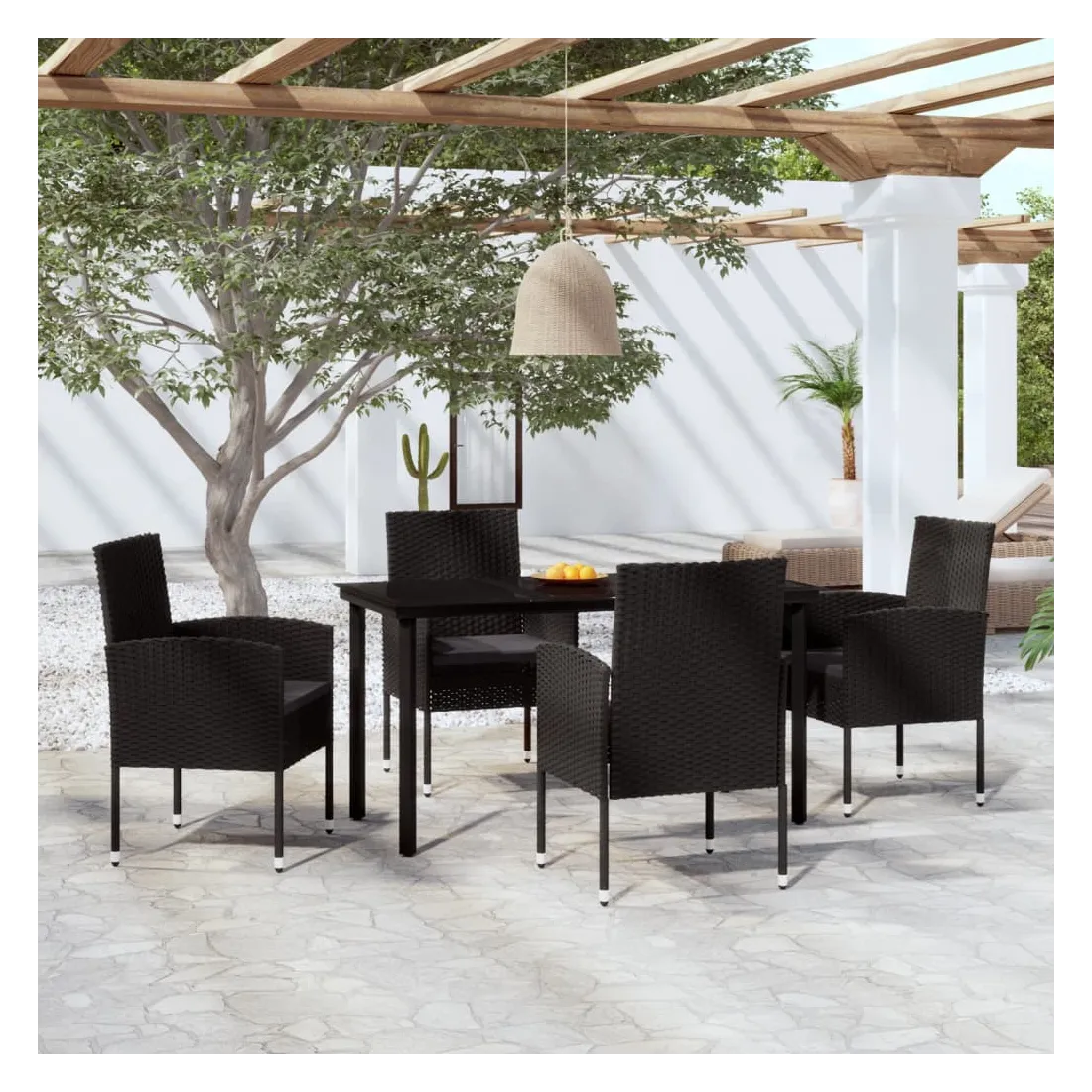 Profitez d'un bon repas ou d'un thé l'après-midi dans votre espace extérieur avec cet ensemble de salle à manger de jardin ! Ayant un design élégant, il deviendra le point central de votre jardin et de votre terrasse ! Cet ensemble de salle à manger d'extérieur pratique est doté d'un cadre en acier, ce qui le rend solide et robuste. Les chaises de jardin sont fabriquées en résine tressée résistante à l'eau et sans entretien, ce qui les rend parfaites pour une utilisation à l'extérieur. Le dessus de table en verre lisse est facile à nettoyer à l'aide d'un chiffon humide et est excellent pour placer des repas, des boissons et d'autres objets décoratifs. En outre, les coussins d'assise épais et amovibles sont très confortables. Remarque : afin de prolonger la durée de vie des meubles d'extérieur, nous vous recommandons de les protéger avec une housse imperméable.