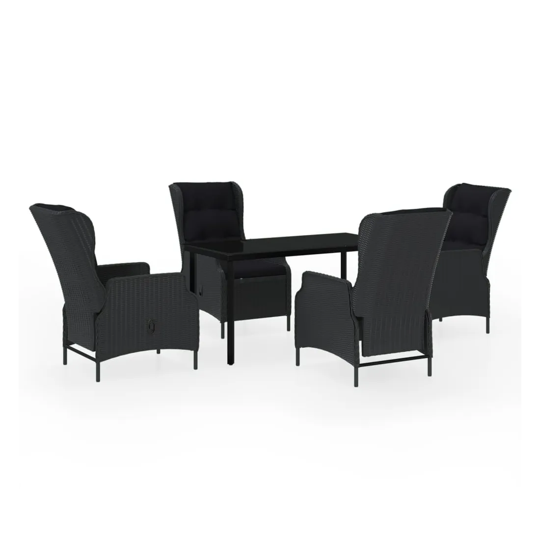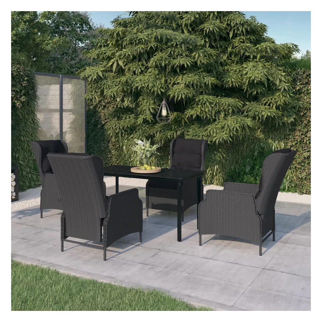 Profitez d'un bon repas ou d'un thé l'après-midi dans votre espace extérieur avec cet ensemble de salle à manger de jardin ! Ayant un design élégant, il deviendra le point central de votre jardin et de votre terrasse ! Cet ensemble de salle à manger d'extérieur pratique est doté d'un cadre en acier, ce qui le rend solide et robuste. Les chaises inclinables de jardin sont fabriquées en résine tressée résistante à l'eau et sans entretien, ce qui les rend parfaites pour une utilisation en extérieur. Les coussins bien rembourrés ajoutent un confort supplémentaire à vos repas. Les housses des coussins sont équipées d'une fermeture éclair et sont amovibles et lavables. Grâce au mécanisme de levage à gaz, le dossier est également réglable pour s'adapter à vos positions. En touchant le bouton