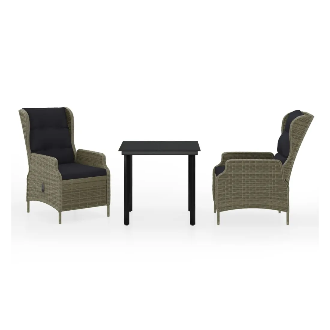 Profitez d'un bon repas ou d'un thé l'après-midi dans votre espace extérieur avec cet ensemble de salle à manger de jardin ! Ayant un design élégant, il deviendra le point central de votre jardin et de votre terrasse ! Cet ensemble de salle à manger d'extérieur pratique est doté d'un cadre en acier, ce qui le rend solide et robuste. Les chaises inclinables de jardin sont fabriquées en résine tressée résistante à l'eau et sans entretien, ce qui les rend parfaites pour une utilisation en extérieur. Les coussins bien rembourrés ajoutent un confort supplémentaire à vos repas. Les housses des coussins sont équipées d'une fermeture éclair et sont amovibles et lavables. Grâce au mécanisme de levage à gaz, le dossier est également réglable pour s'adapter à vos positions. En touchant le bouton sur le côté, le dossier peut s'incliner, pour une position confortable. En outre, le dessus de table en verre lisse est facile à nettoyer à l'aide d'un chiffon humide et est excellent pour placer des repas, des boissons et d'autres objets décoratifs. Remarque : afin de prolonger la durée de vie des meubles d'extérieur, nous vous recommandons de les protéger avec une housse imperméable.