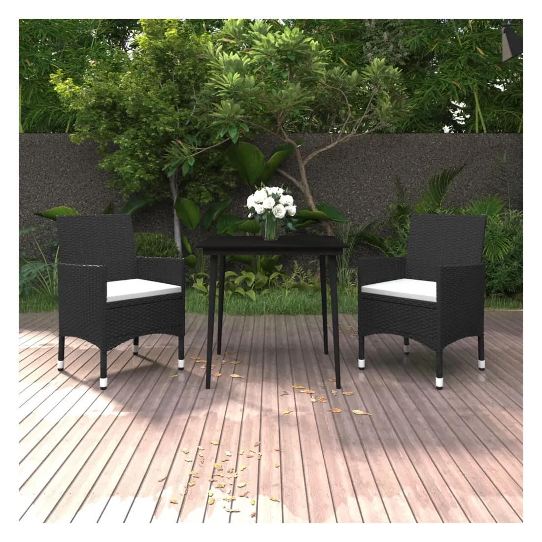 Ensemble à manger de jardin coussins 3 pcs Résine tressée Verre