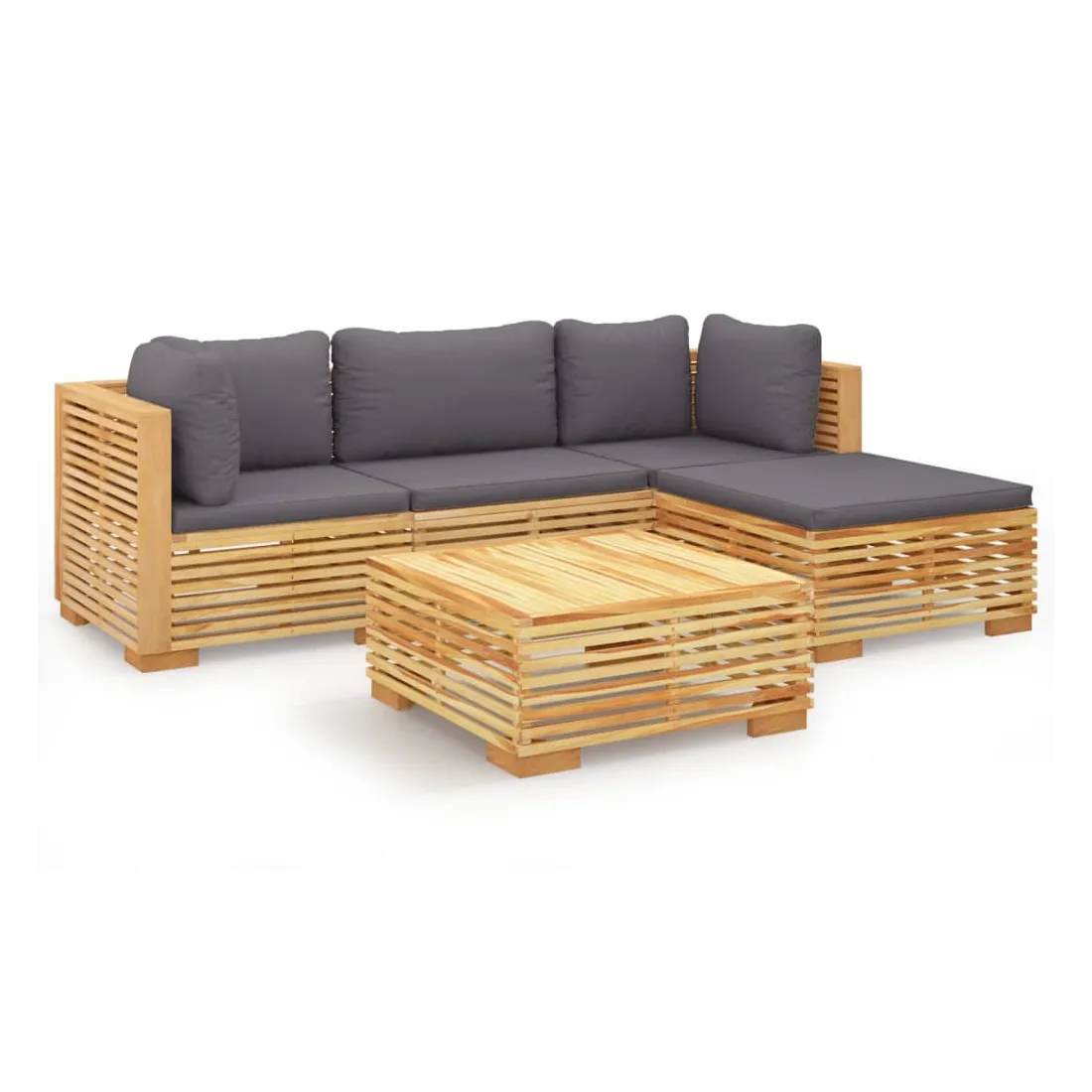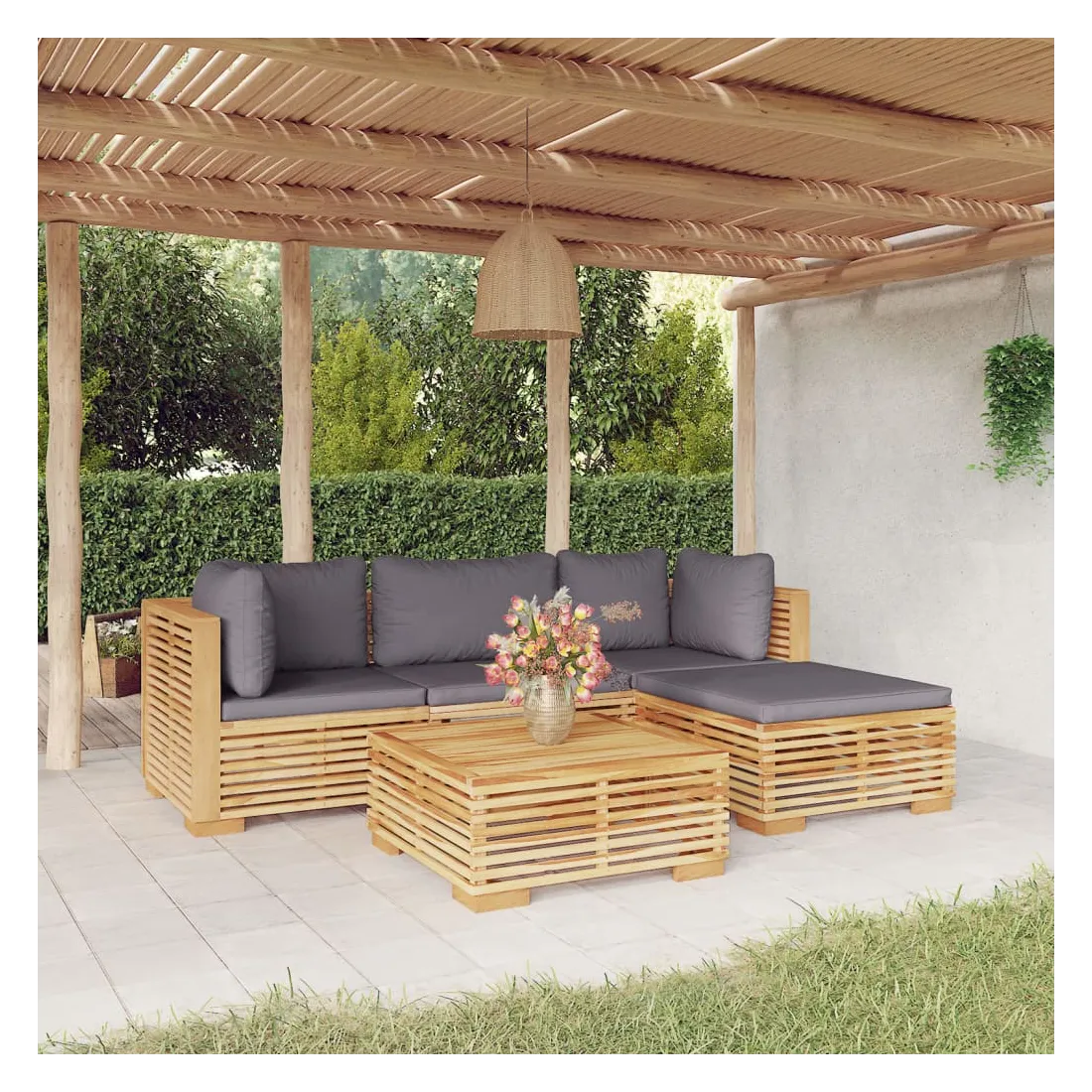Salon de jardin 5 pcs avec coussins Bois de teck solide