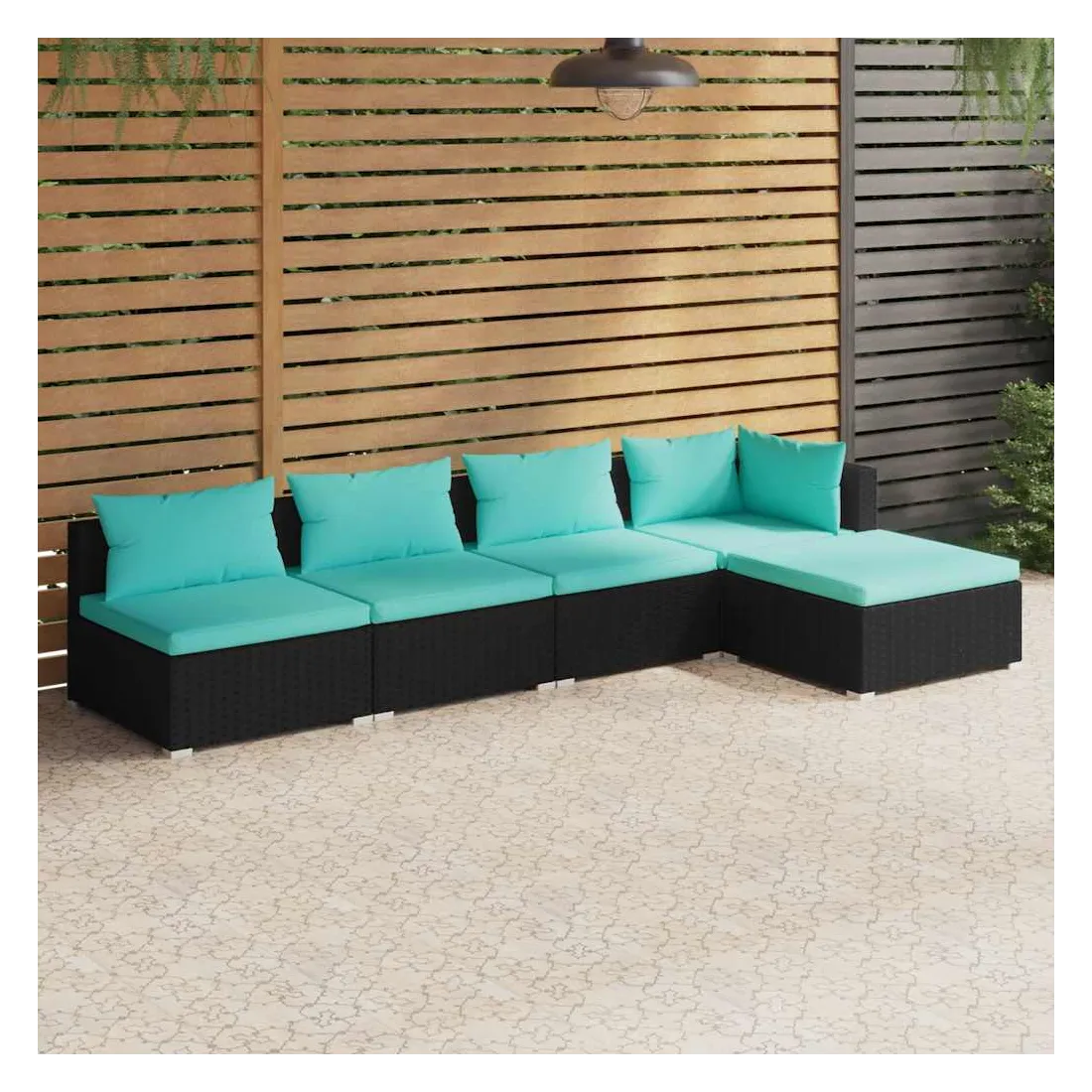 Salon de jardin 5 pcs avec coussins Résine tressée Noir