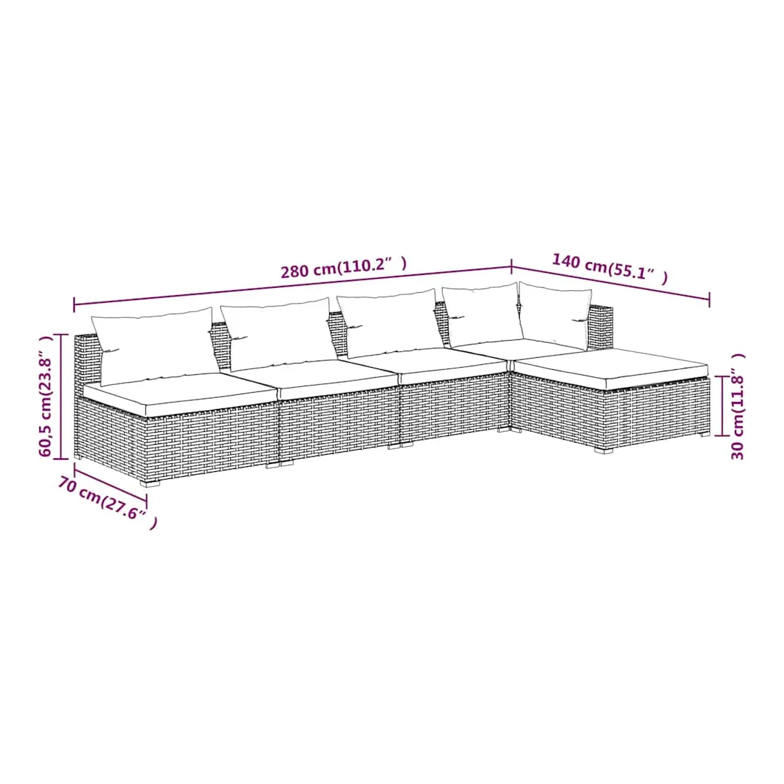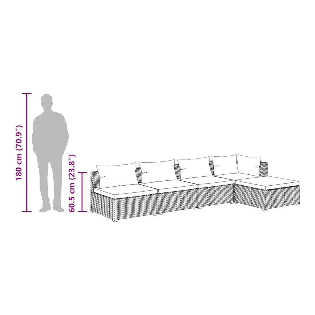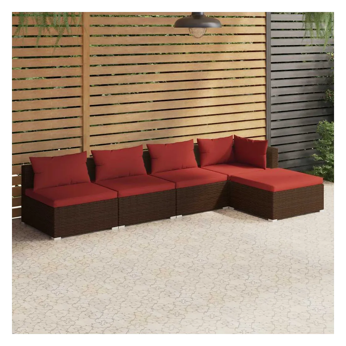 Salon de jardin 5 pcs avec coussins résine tressée marron