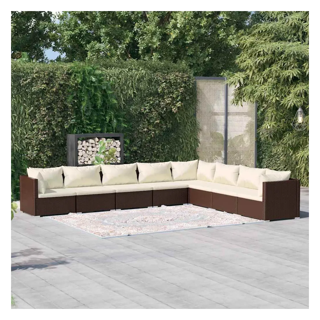 Salon de jardin 8 pcs avec coussins Résine tressée Marron