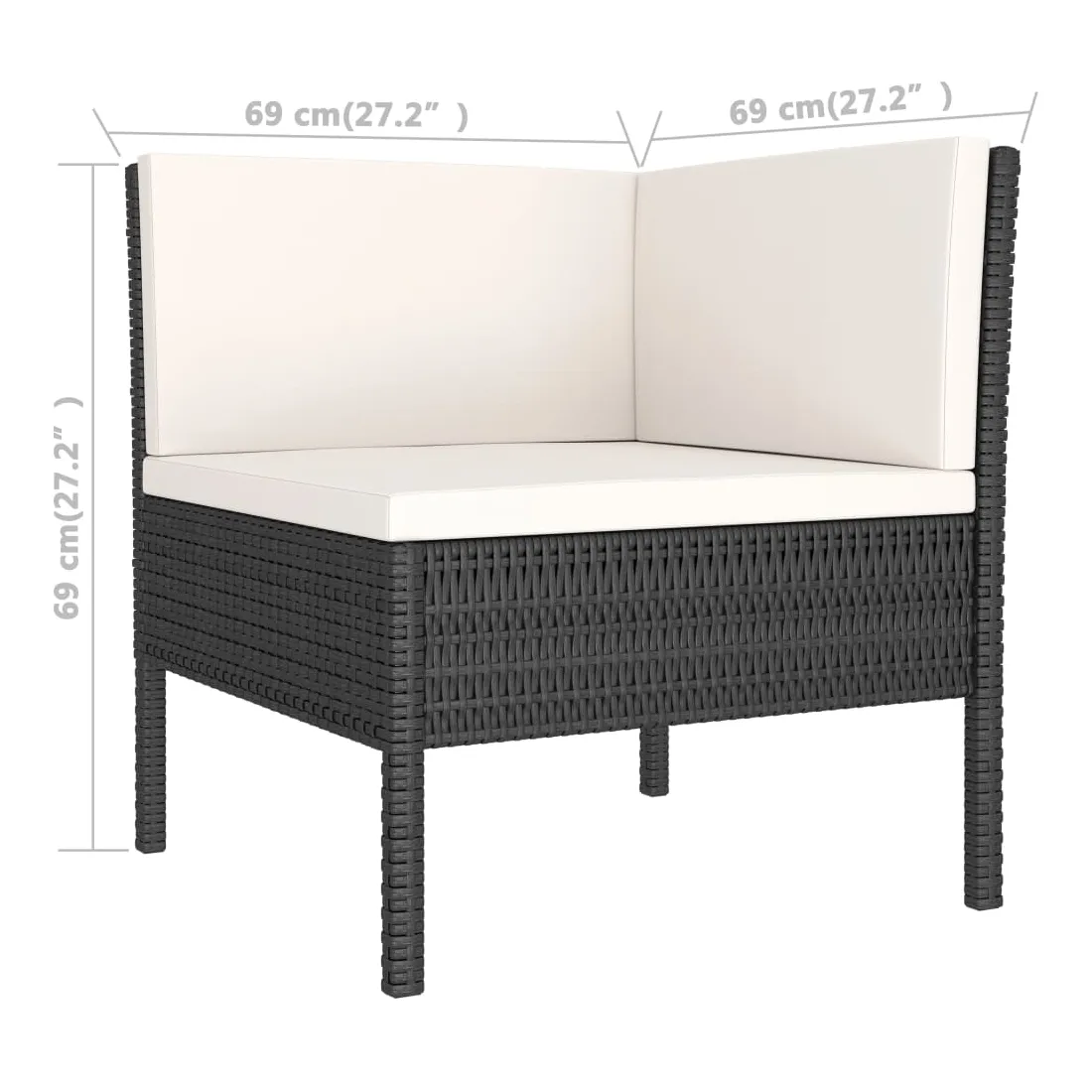 • Dimensions du canapé d'angle : 69 x 69 x 69 cm (l x P x H)