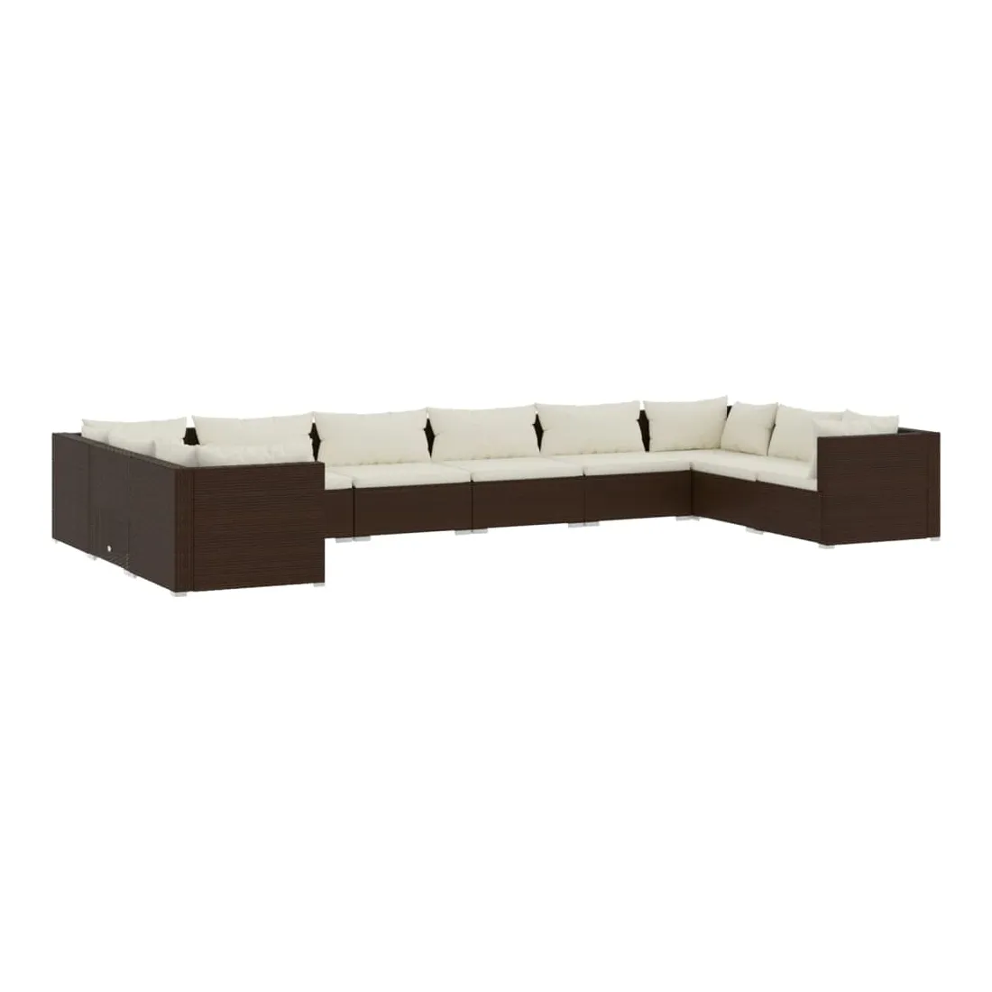 Salon de jardin 10 pcs avec coussins Résine tressée Marron