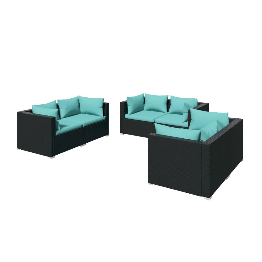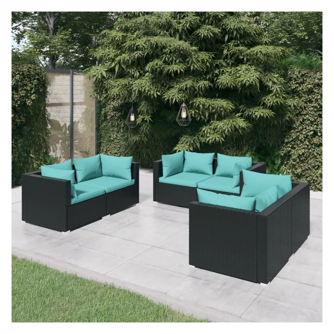 Salon de jardin 6 pcs avec coussins Résine tressée Noir