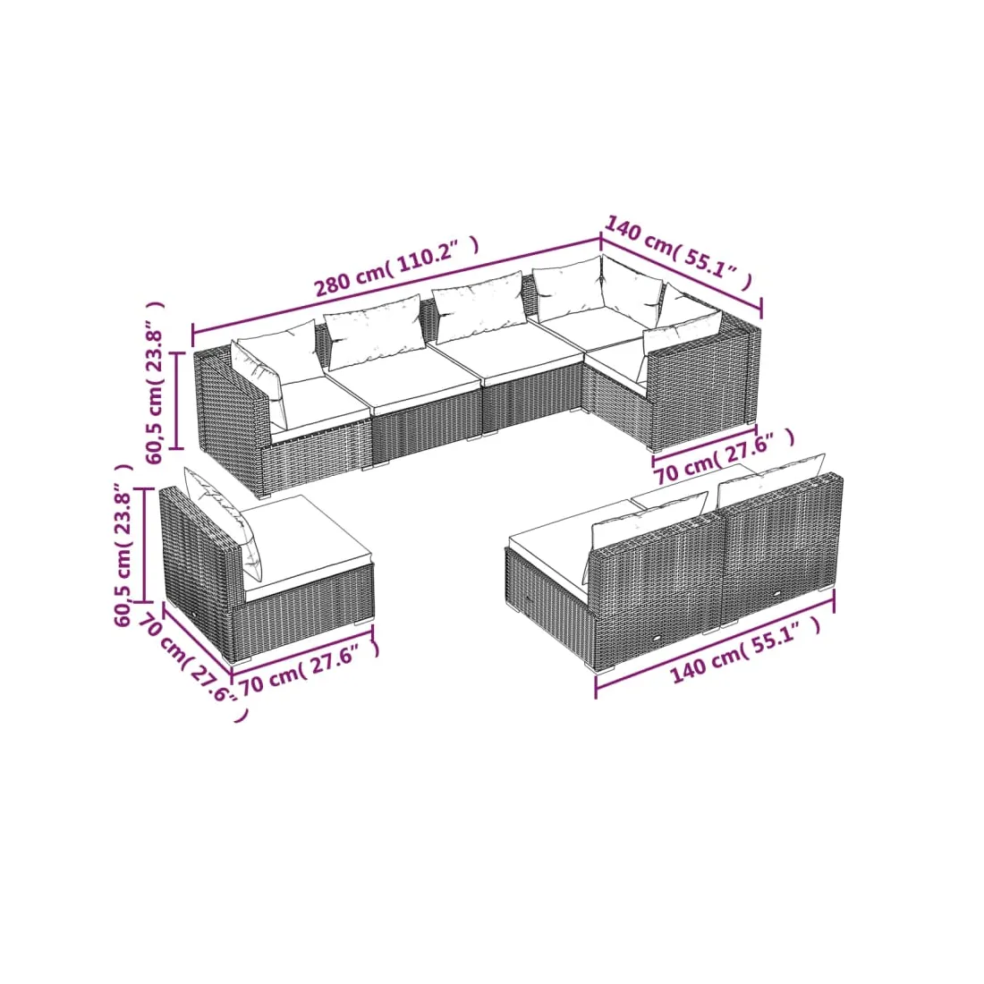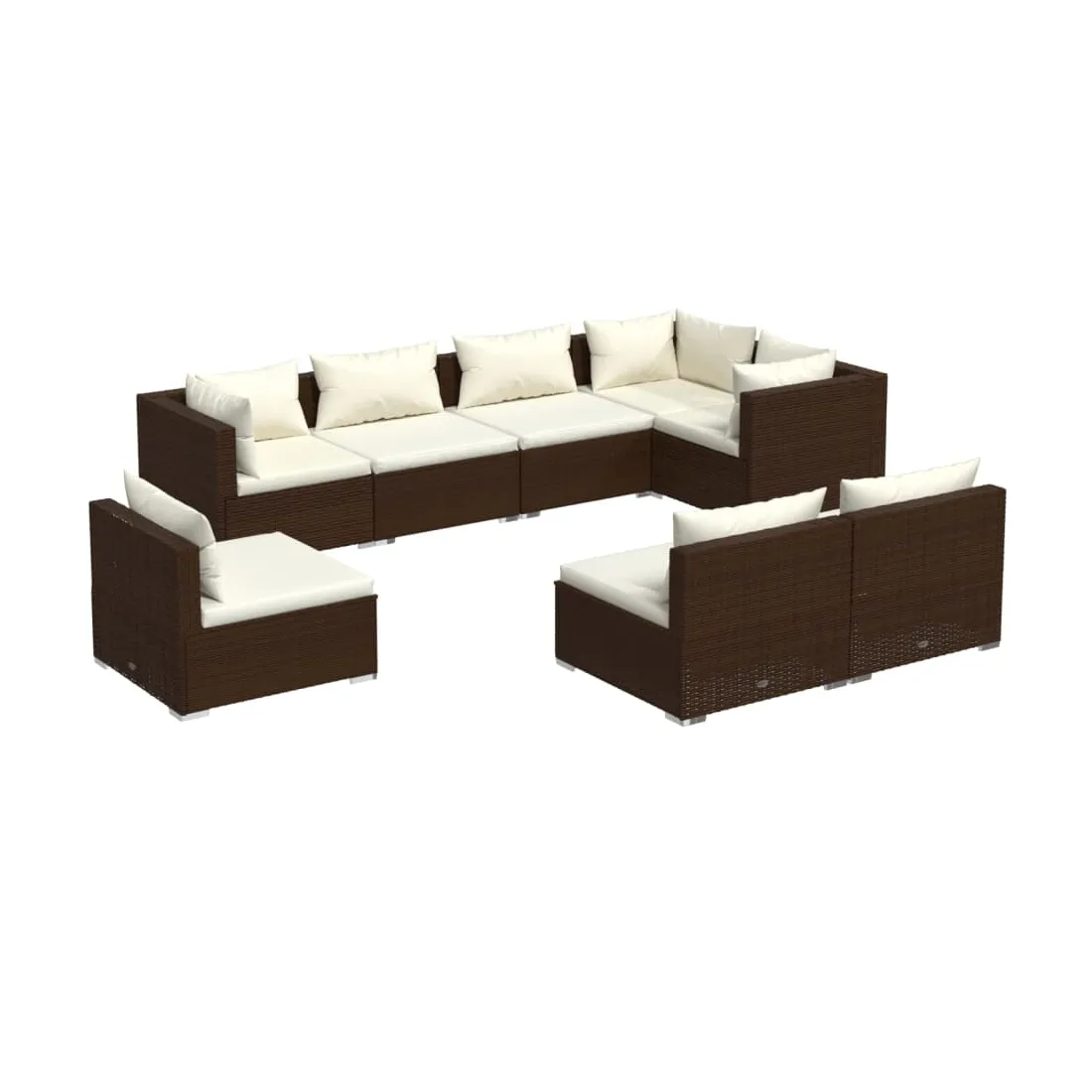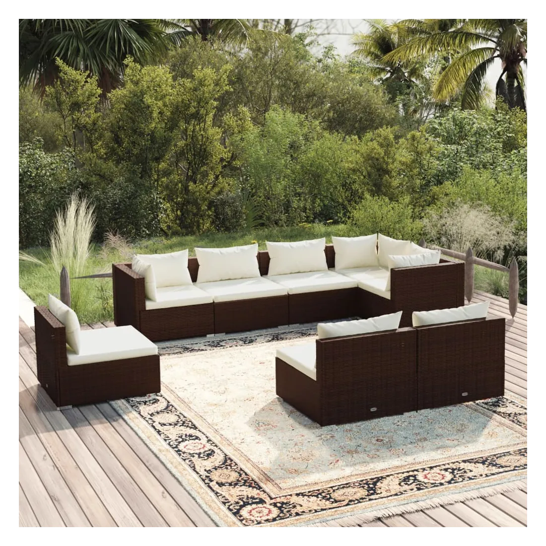 Salon de jardin 8 pcs avec coussins résine tressée marron