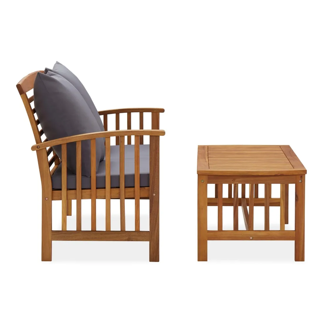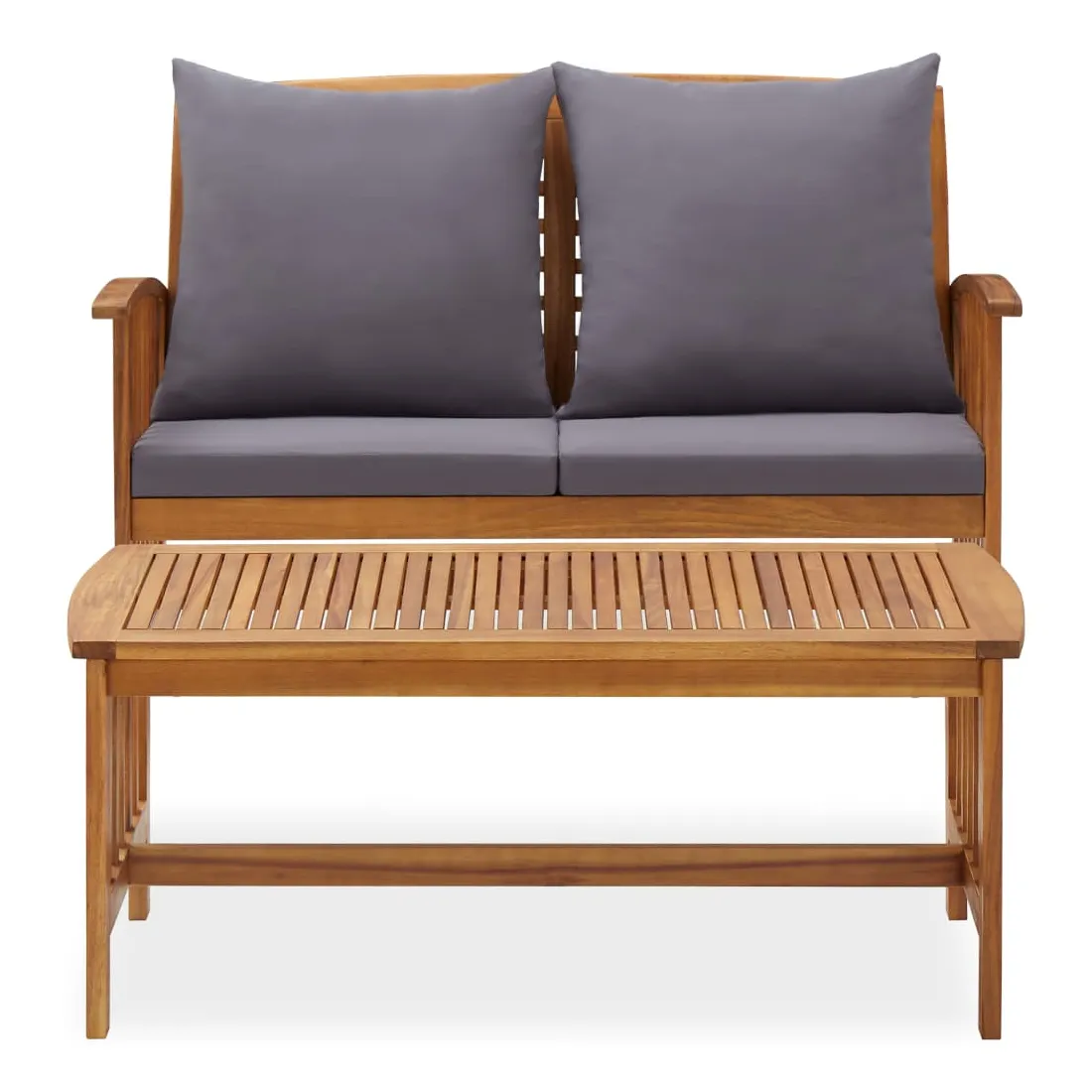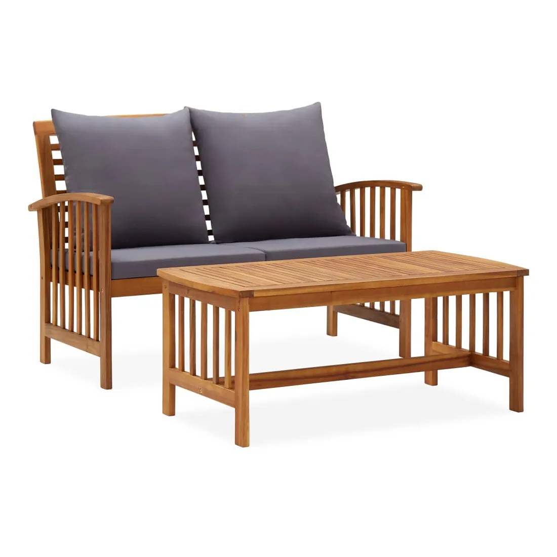 Salon de jardin 2 pcs avec coussins bois d'acacia solide