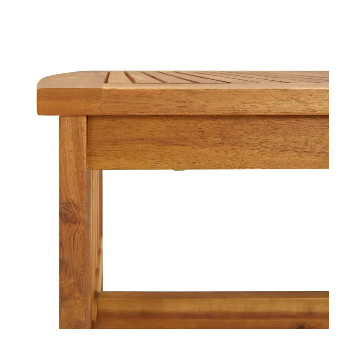 L'ensemble de salon de jardin en bois ajoute un look vintage et est spécialement conçu pour votre jardin, patio ou autre espace de vie extérieur ! L’ensemble de meubles d’extérieur est construit en bois d'acacia massif avec une finition à l’huile, ce qui le rend stable et durable. Grâce au dessus de table en bois massif au design à lattes, la table basse vous offre de l’espace pour mettre vos collations, paniers de fruits, objets décoratifs, ainsi que d’autres essentiels. Le coussin de siège et l'oreiller de dossier rendent le banc confortable pour y s’asseoir. Le dossier et les accoudoirs apportent un confort d'assise supplémentaire. Remarque importante : les couleurs et les grains varient d'une pièce à l'autre, rendant chaque pièce unique. La livraison est aléatoire, ce qui garantit