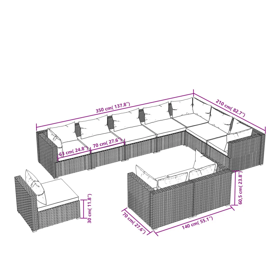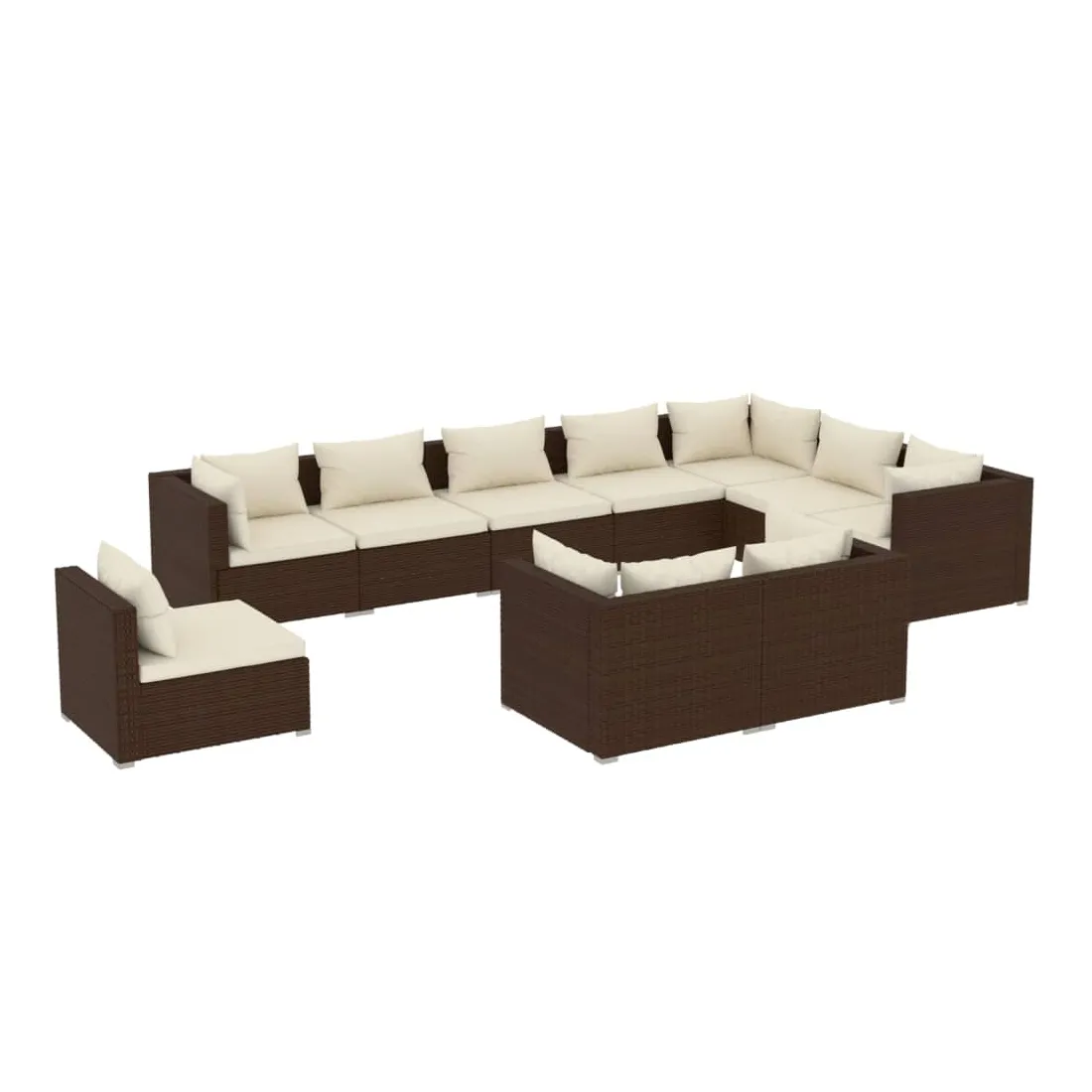 Salon de jardin 10 pcs avec coussins Résine tressée Marron