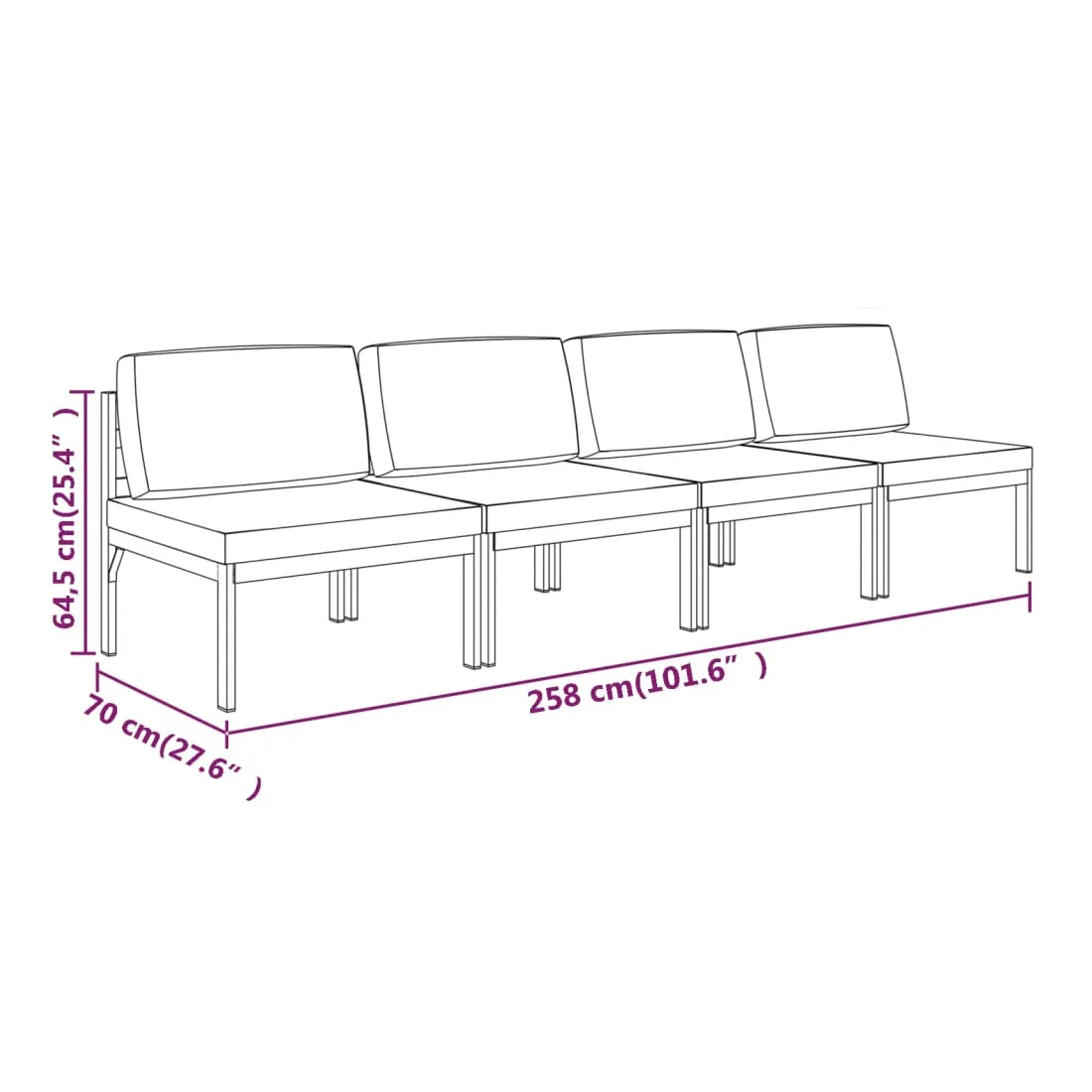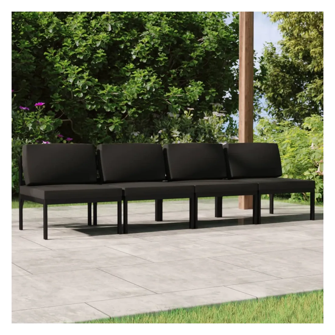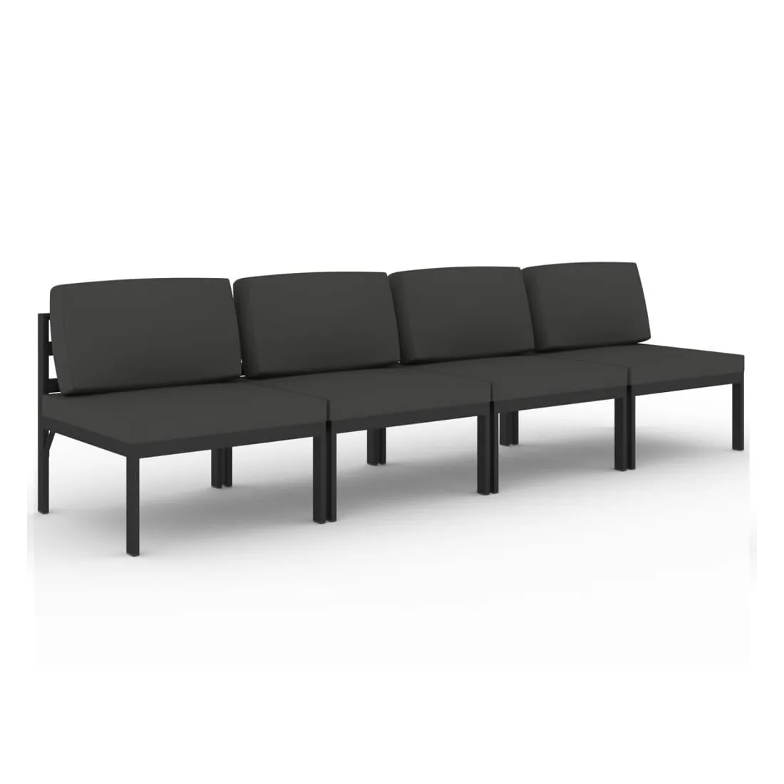 Alliant style et fonctionnalité, ce canapé de jardin 4 places en aluminium vous offre un endroit parfait pour vous détendre et profiter du plus grand confort possible. Design modulaire : cet ensemble de salon de patio présente une conception modulaire qui vous permet de combiner ses sections modulaires dans différentes configurations, selon vos goûts !Matériau haut de gamme : fabriqué en aluminium, l'ensemble de salon d'extérieur est résistant aux intempéries et robuste. La construction légère facilite son déplacement.Coussins et oreillers confortables : les coussins de siège et les oreillers de dossier sont inclus pour votre confort. Remarque :Afin de prolonger la durée de vie de votre mobilier d'extérieur, nous vous recommandons de le protéger avec une housse imperméable.