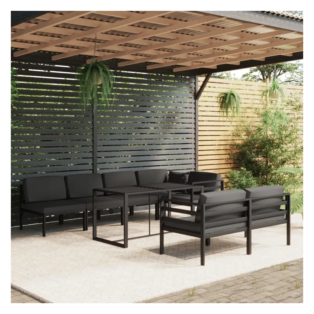 Salon de jardin 8 pcs avec coussins Aluminium Anthracite