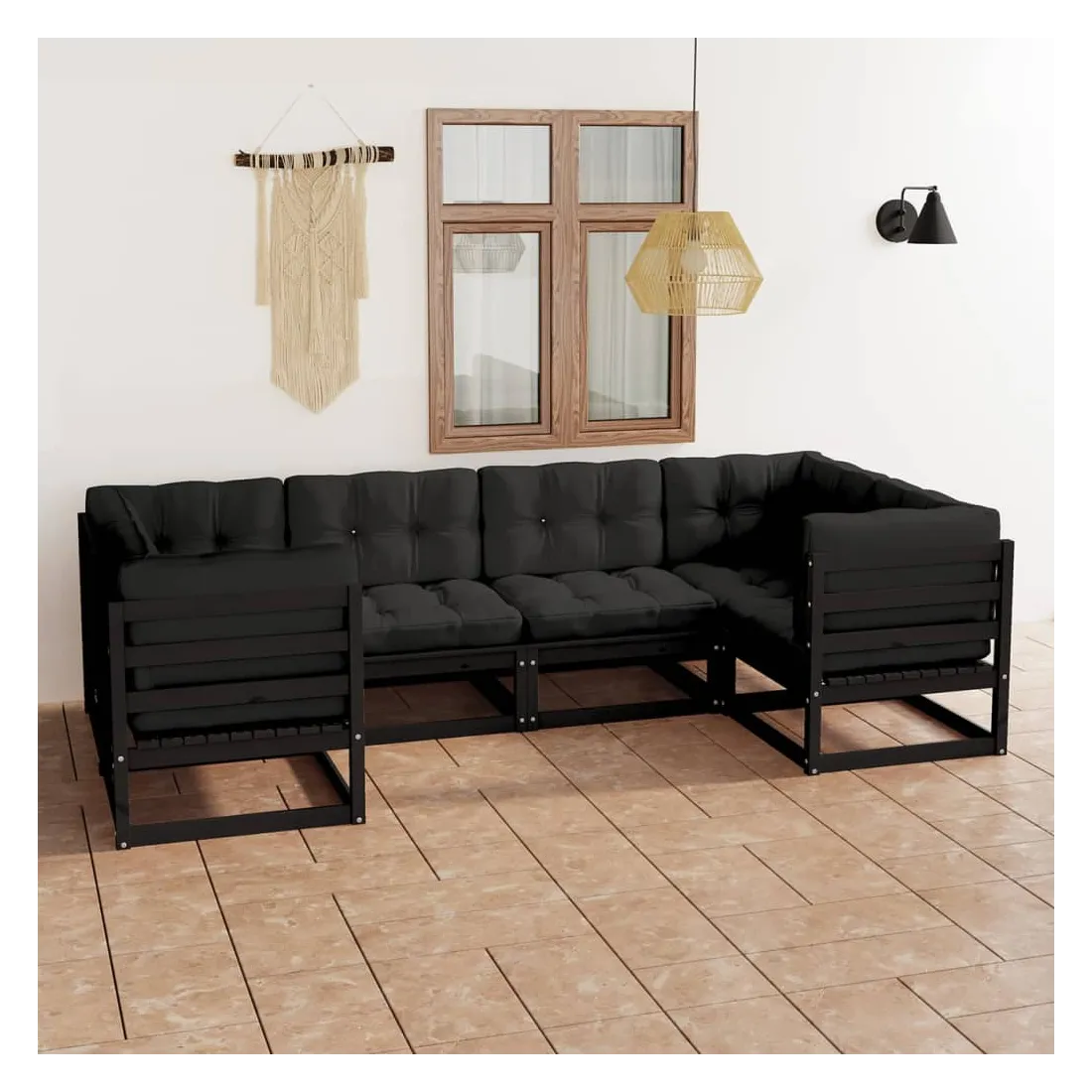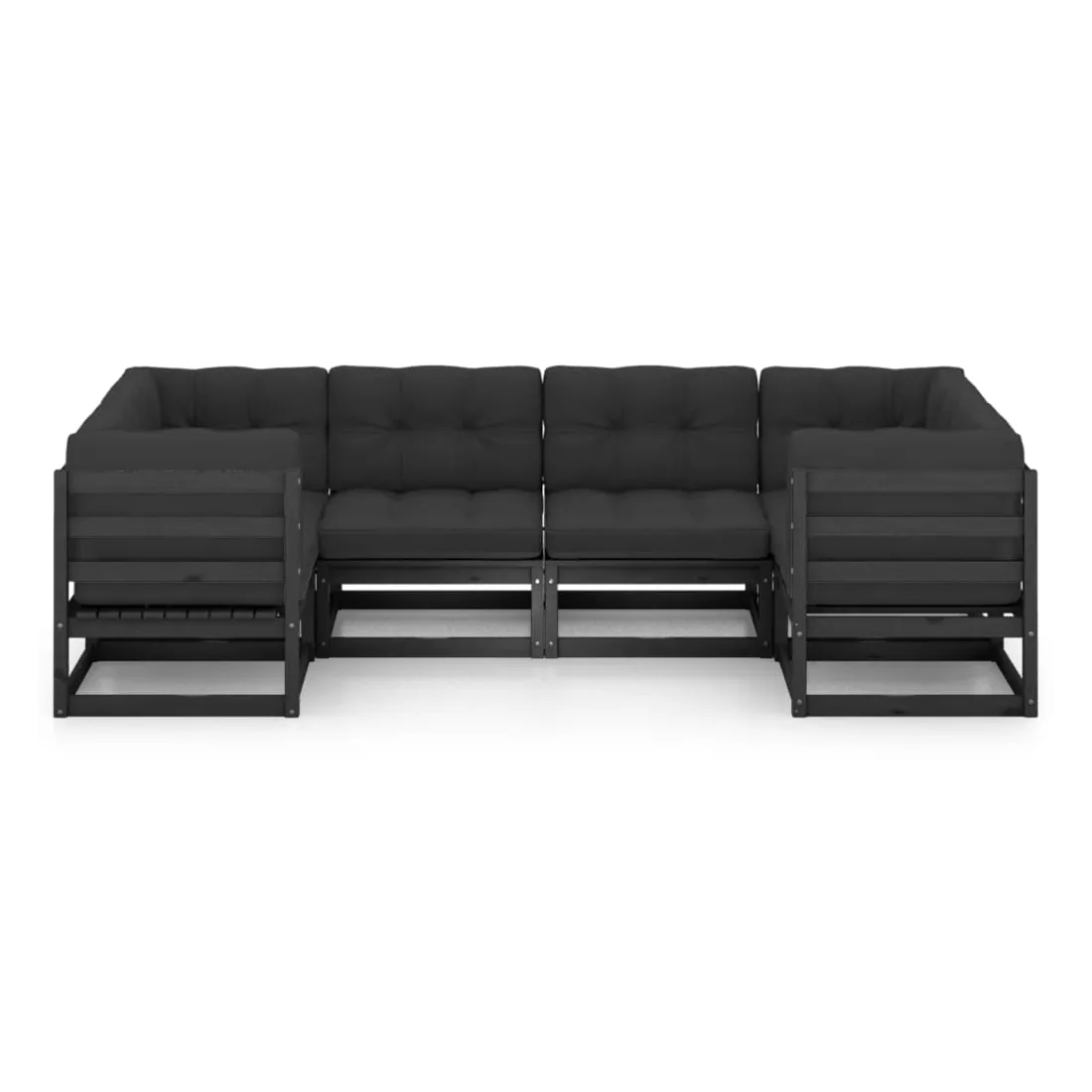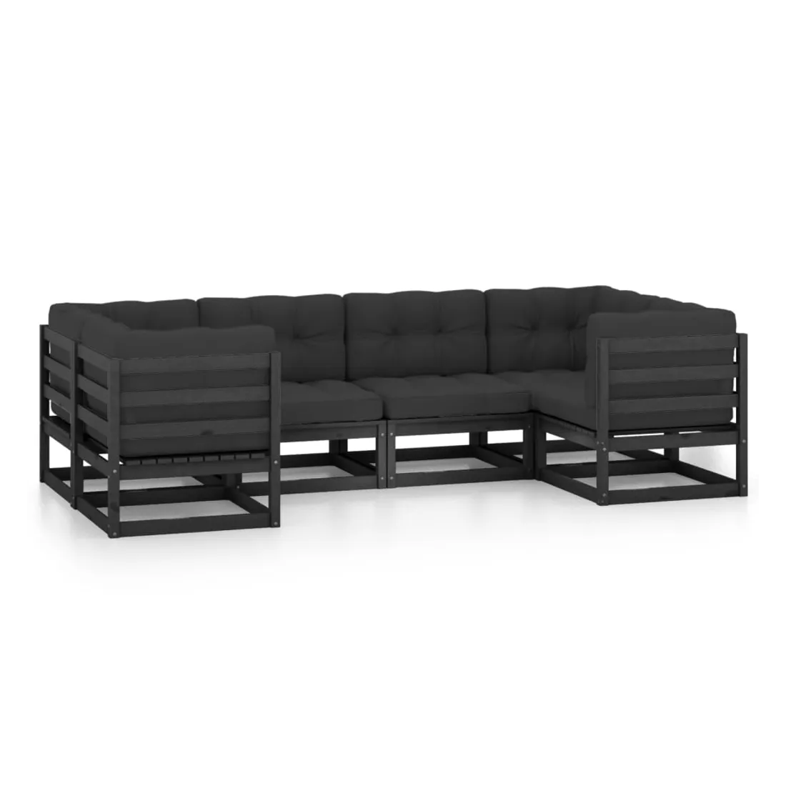 Salon de jardin 6 pcs avec coussins Noir Bois de pin massif