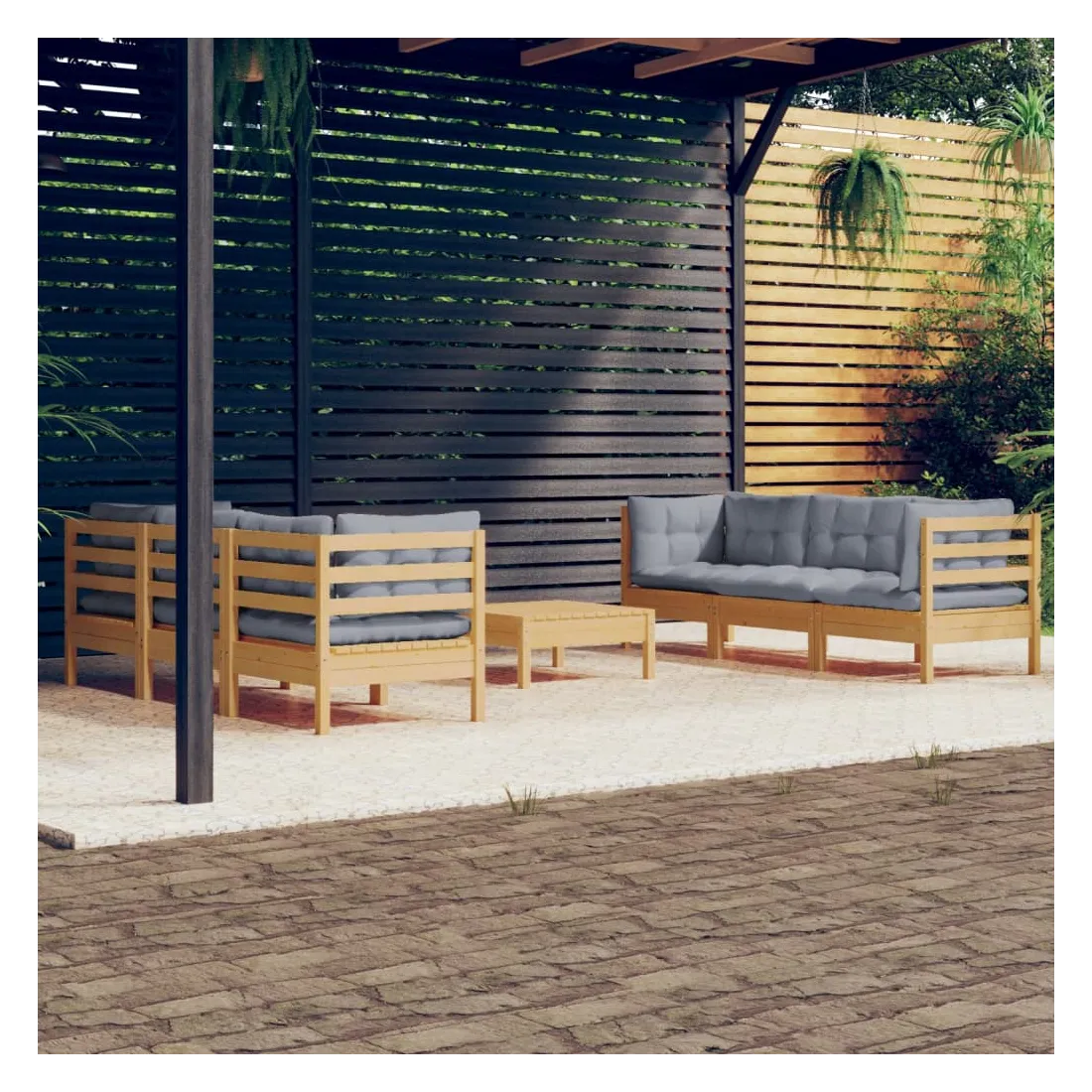 Ce salon de jardin est un excellent choix pour vous détendre et profiter du beau temps, faire une sieste ou discuter avec votre famille ou vos amis. Le salon de patio est fabriqué en bois de pin massif, ce qui le rend robuste et stable. Les coussins ajoutent un confort supplémentaire. Vous pouvez le combiner avec d’autres segments modulaires pour créer vos propres configurations de salon de jardin ! Remarque : afin de prolonger la durée de vie des meubles d'extérieur, nous vous recommandons de les protéger avec une housse imperméable.
