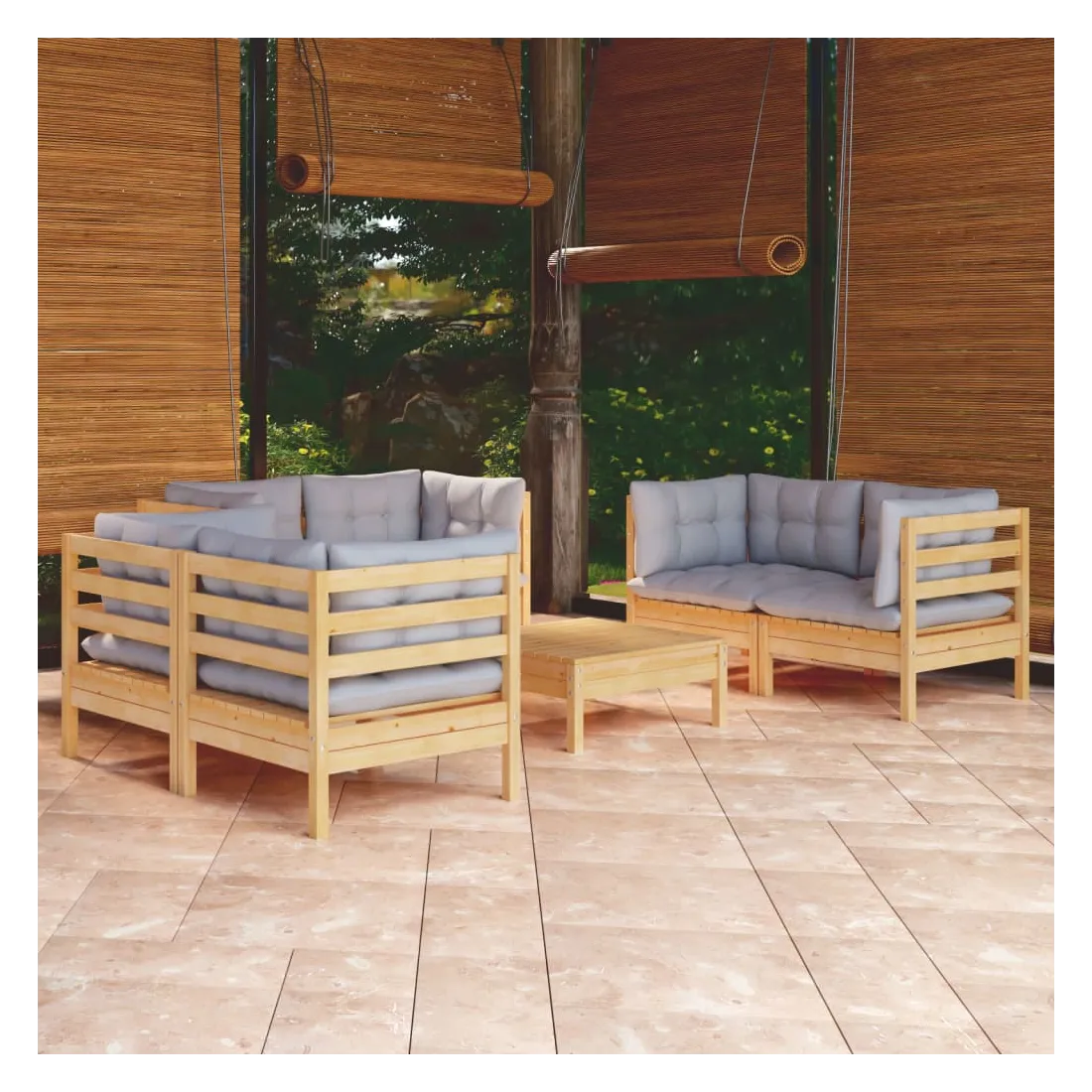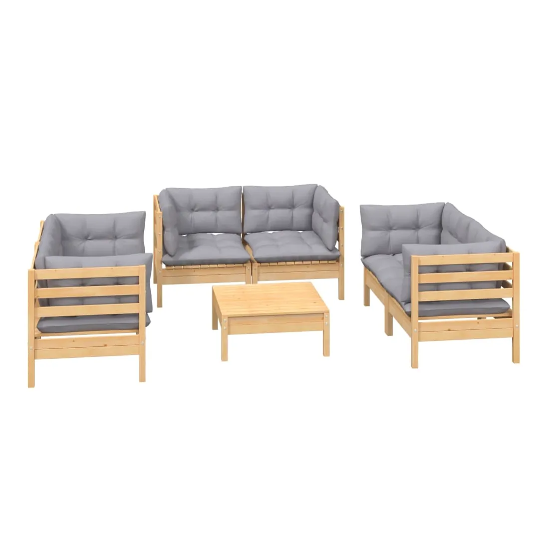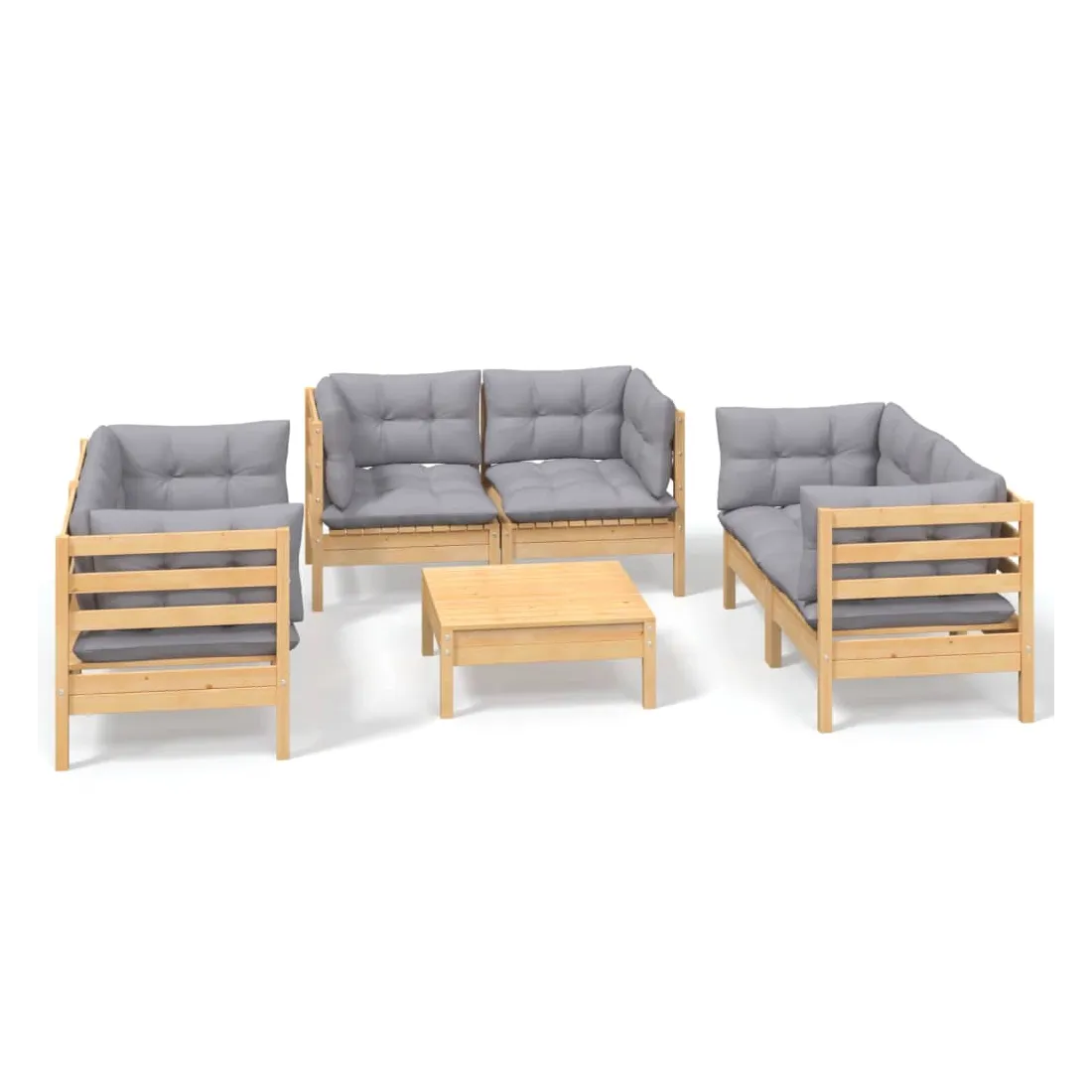 Ce salon de jardin est un excellent choix pour vous détendre et profiter du beau temps, faire une sieste ou discuter avec votre famille ou vos amis. Le salon de patio est fabriqué en bois de pin massif, ce qui le rend robuste et stable. Les coussins ajoutent un confort supplémentaire. Vous pouvez le combiner avec d’autres segments modulaires pour créer vos propres configurations de salon de jardin ! Remarque : afin de prolonger la durée de vie des meubles d'extérieur, nous vous recommandons de les protéger avec une housse imperméable.