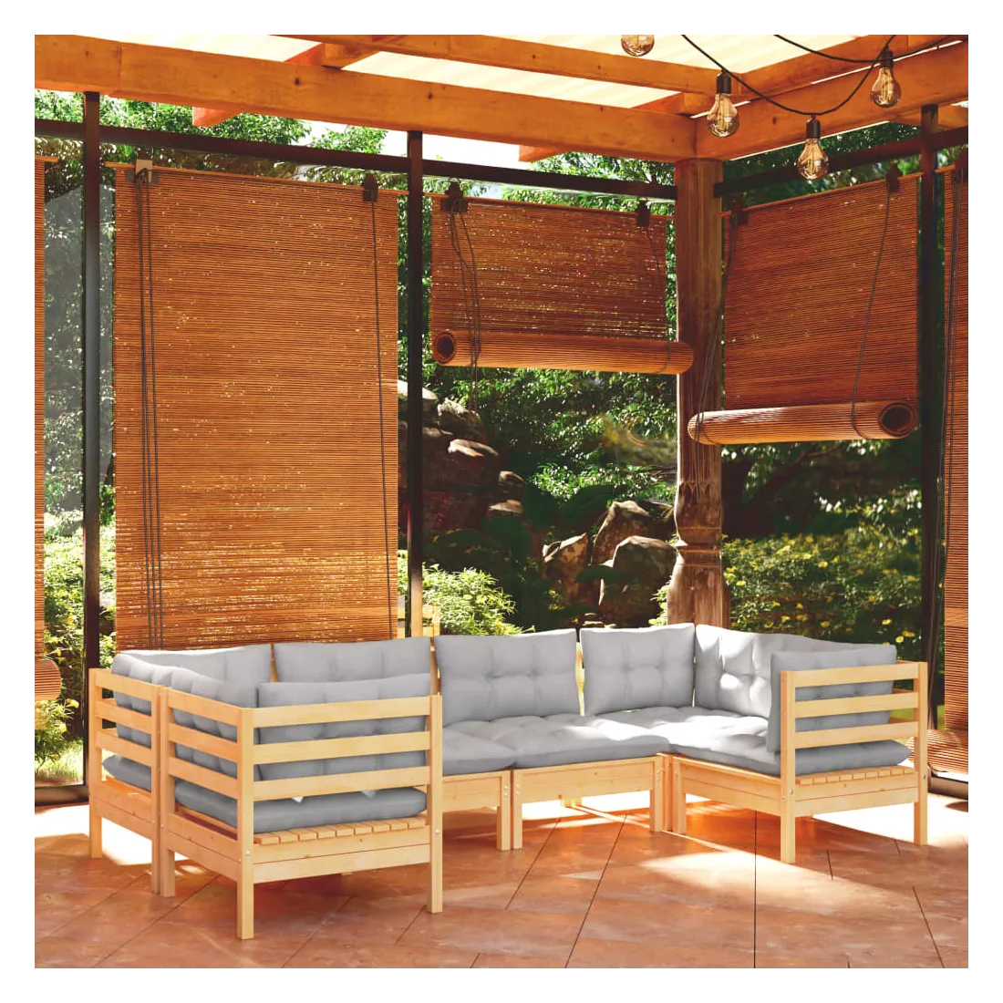 Cet ensemble de salon de jardin en bois est un choix excellent pour vous détendre et profiter du bon temps, faire une sieste ou discuter avec votre famille ou vos amis. Le salon de patio est fabriqué en bois de pin massif, ce qui le rend robuste et stable. Les coussins ajoutent un confort supplémentaire. Vous pouvez le combiner avec d’autres segments modulaires pour créer vos propres configurations de salon de jardin ! Remarque : afin de prolonger la durée de vie des meubles d'extérieur, nous vous recommandons de les protéger avec une housse imperméable.